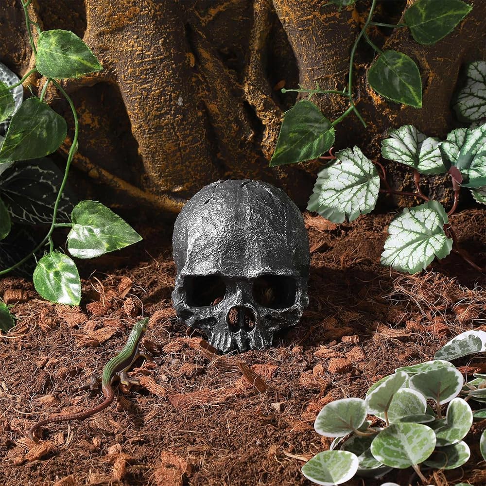 Unique skull design, fits perfectly with various terrariums