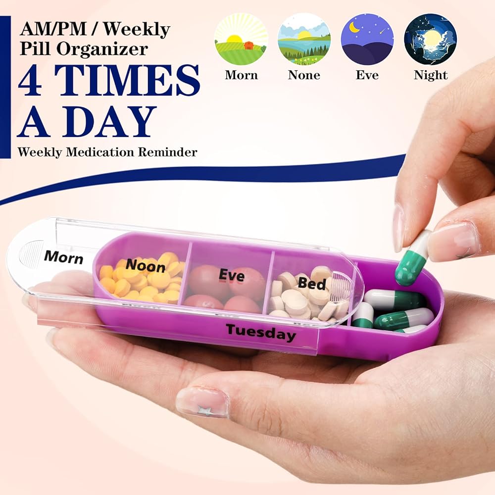 • What You Receive: you will get 4 pcs weekly pill organizer in PP material, different compartments can store a lot of pills and vitamins of different sizes and shapes, can meet your weekly needs, remind you and family to take pills on time