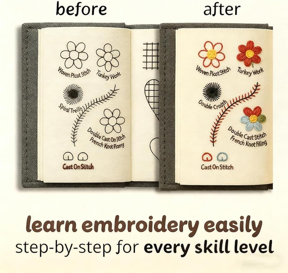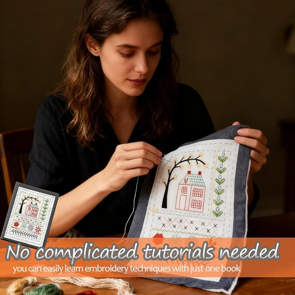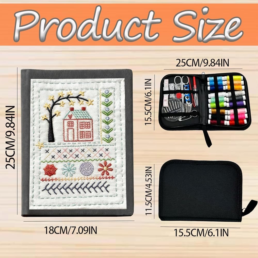 مجموعة كتب غرز التطريز مع دليل غرز 106 و86 قطعة من أدوات الخياطة، مجموعة تطريز الكل في واحد، مجموعة تطريز محمولة للمبتدئين للبالغين، محبي الحرف اليدوية