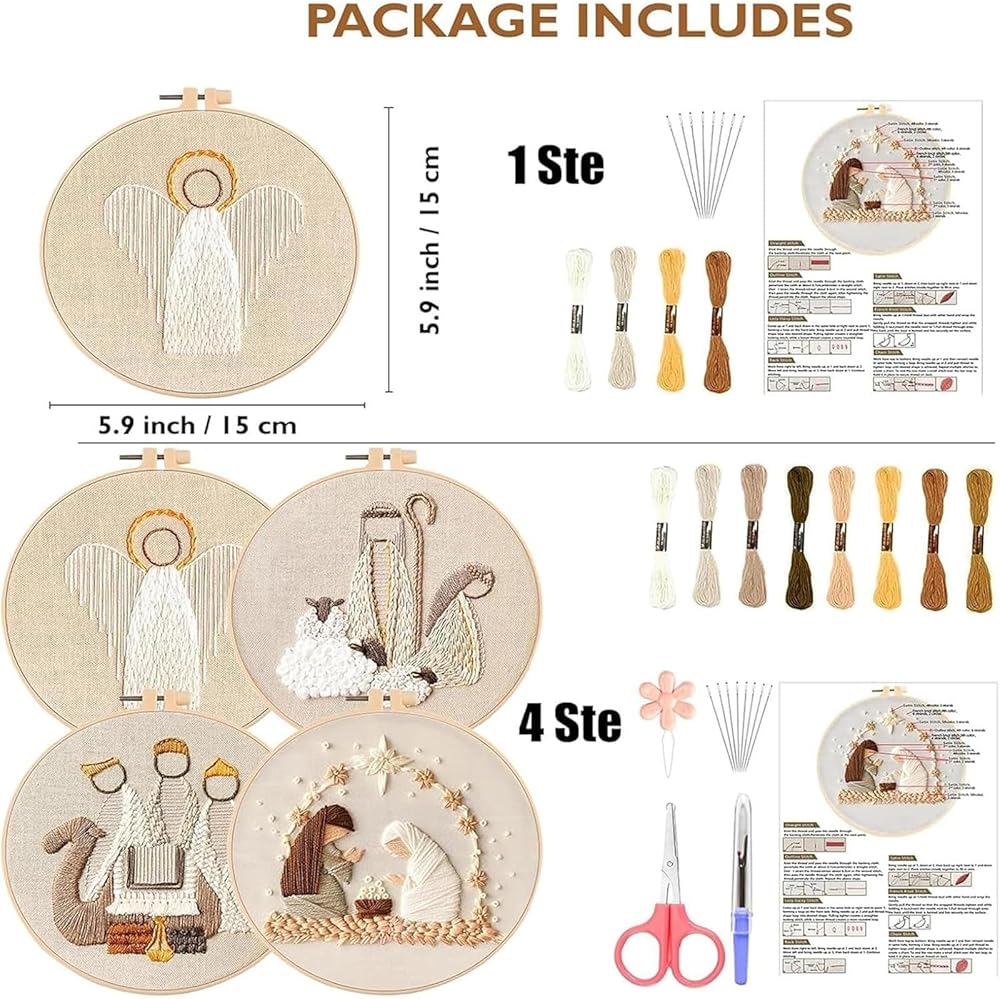 Easy to use: Open the Christmas cross stitch kit, and then loosen the screw of the embroidery hoop, put the inner ring under the fabric and the outer ring on the fabric, then buckle the fabric and tighten the screws. With the help of detailed instructions, can greatly help beginners to learn and finish the needlework