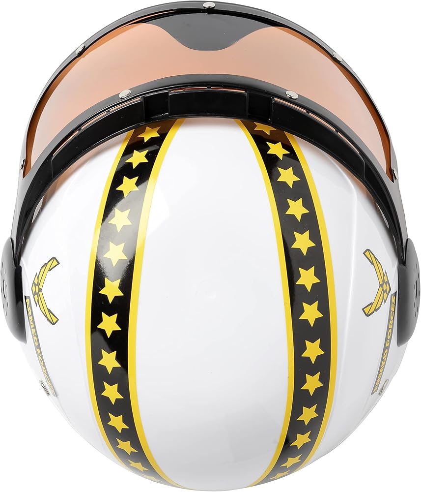 This Aeromax built Armed Forces Fighter Pilot helmet is made of great quality construction with beautiful, fun details. The movable visor goes up and down and the headband is adjustable too! Great fun for pretend play and Halloween. Play the Policeman roleby adding a matching Police top or Police suit form the Aeromax line of quality dress up. Aeromax quality products make great gifts for girls and boys. Aeromax quality products make great gifts for girls and boys. Personalized on back rear of helmet. 14 character limit. This item has been tested to meet applicable USA safety standards for children's products.