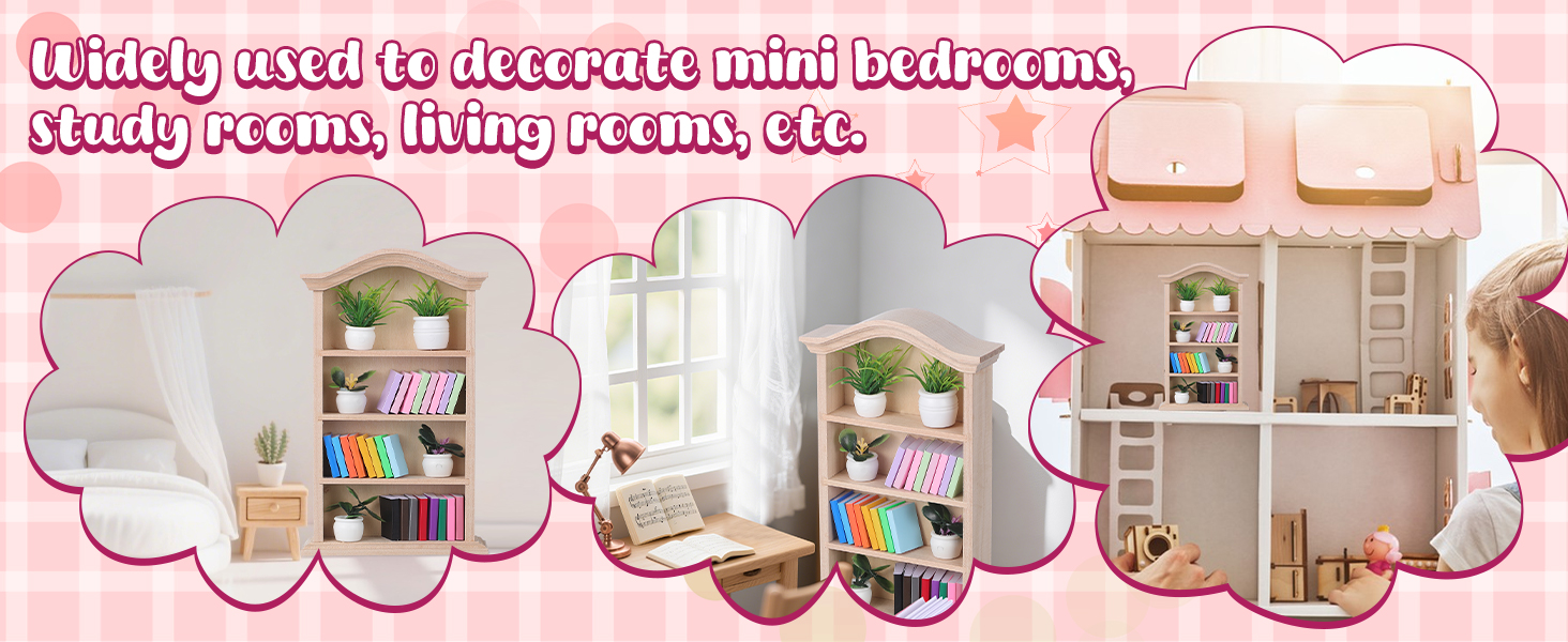 مادة موثوقة: يتكون رف الكتب المصغر من الخشب ، وهي بنية مصقولة يدويًا ، مستقرة ، مدمجة وثلاثية الأبعاد. الكتب المصغرة المصنوعة من مواد ورقية نظيفة وليس من السهل تلاشي ، تضيف النباتات الخضراء البلاستيكية الصغيرة نضارة وحيوية ، مما يجعل خزانة الكتب رتيبة.