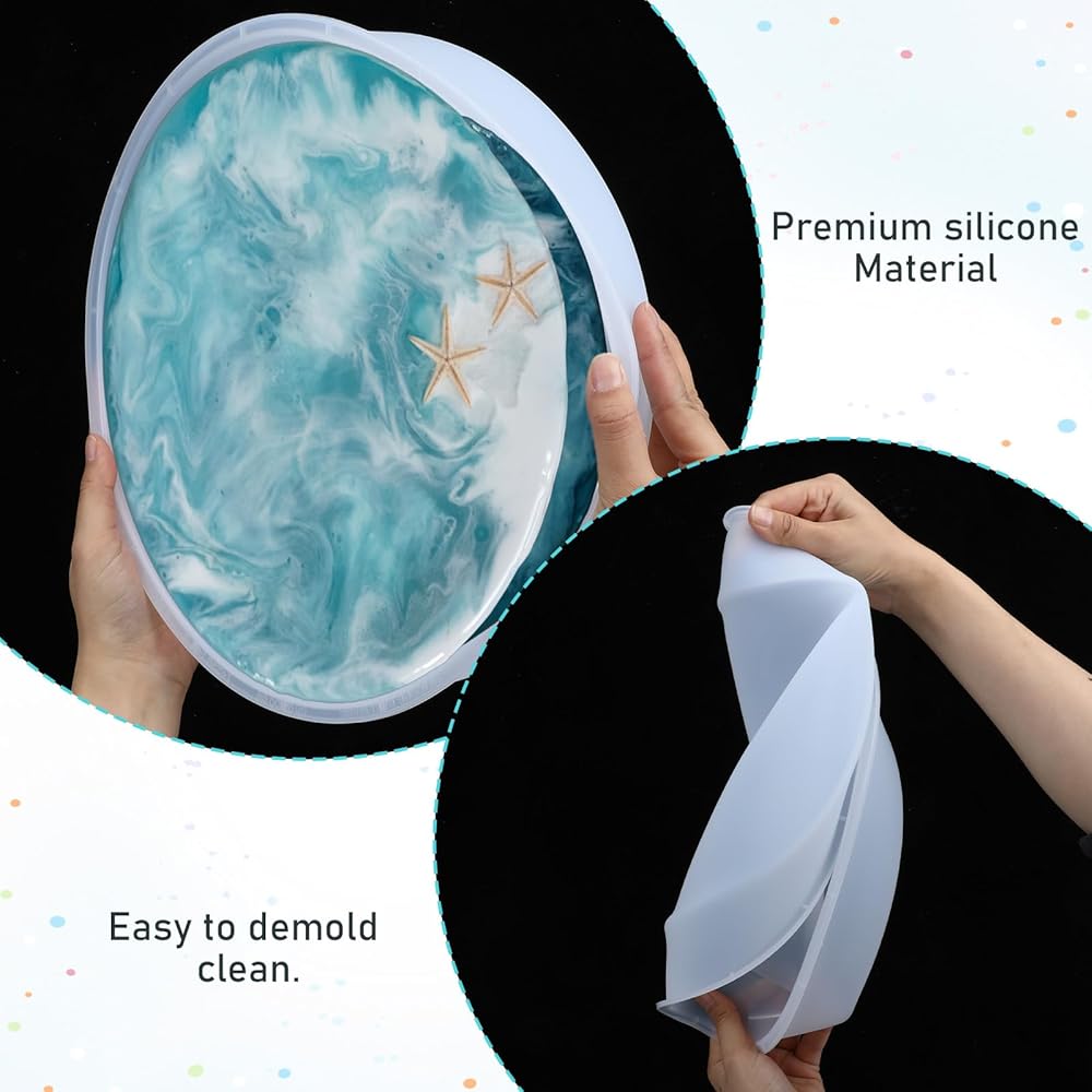 • 【Versatile Large Silicone Molds】: Perfect for a variety of DIY projects, these round silicone epoxy resin molds accommodate fruit trays, geode agate trays, serving trays, makeup trays, floral preservation resin art, resin clocks, large boards, small resin tables, and wall hangings. Compatible with epoxy and UV resin, you can easily personalize your crafts.