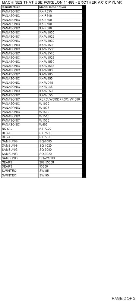 The Porelon Brother AX10 Compatible Correctable Mylar Typewriter Ribbon replaces manufactures part #'s 1030, 1230, and 1430. This ribbon provides vivid and consistent black color in addition to exceptional light fastness and durable impressions. This product has been designed and manufactured to operate the original equipment identified. 1 pack. Porelon specializes in creating inking products and elastomers for a wide variety of industries. They focus their scientific, engineering and customer service efforts on delivering solutions that perform to your exact specifications.