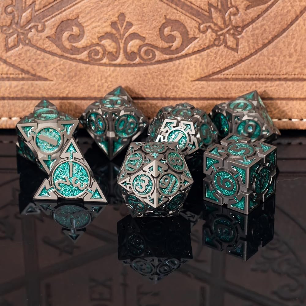 【سلس ودائم مصنوع من سبيكة الزنك ، هذه الزهر المعدني الثقيل مجموعة لفات بسلاسة مع وزن مرضي. مثالي لجلسات RPG و D&D الغامرة.