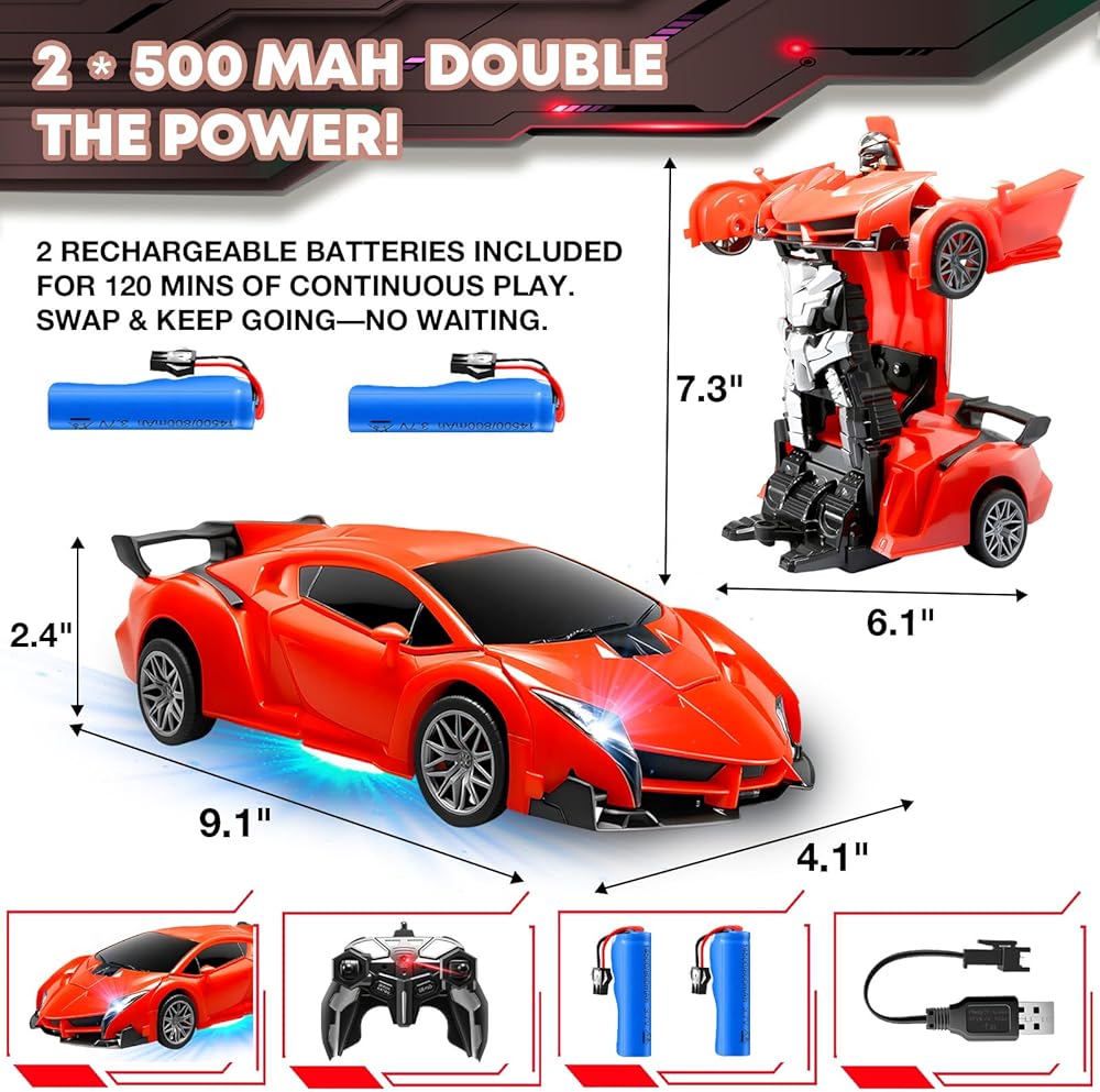 2-في 1 تحويل سيارة Robot: توفر سيارة التحكم عن بعد هذه التشويق من تحويل الروبوتات وسيارات الألعاب. امسك الزر للتبديل بسلاسة من سيارة رياضية أنيقة إلى روبوت الحركة. يعرض الوضع التجريبي بنقرة واحدة وظائفه ، ويقدم متعة تفاعلية للأطفال الذين يحبون ألعاب تغيير الشكل.