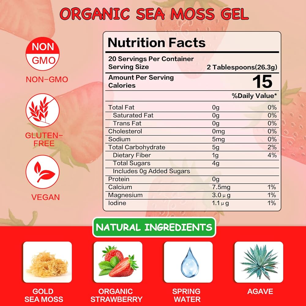 دعم الجهاز المناعي - جل طحالب البحر الخام لا يحتوي على مواد حافظة أو ألوان أو سكر. جل طحالب البحر الأيرلندية غني بالفيتامينات والمعادن، كما أن تناول جل طحالب البحر يمكن أن يعزز امتصاص العناصر الغذائية، وبالتالي تحسين نظام المناعة لديك.