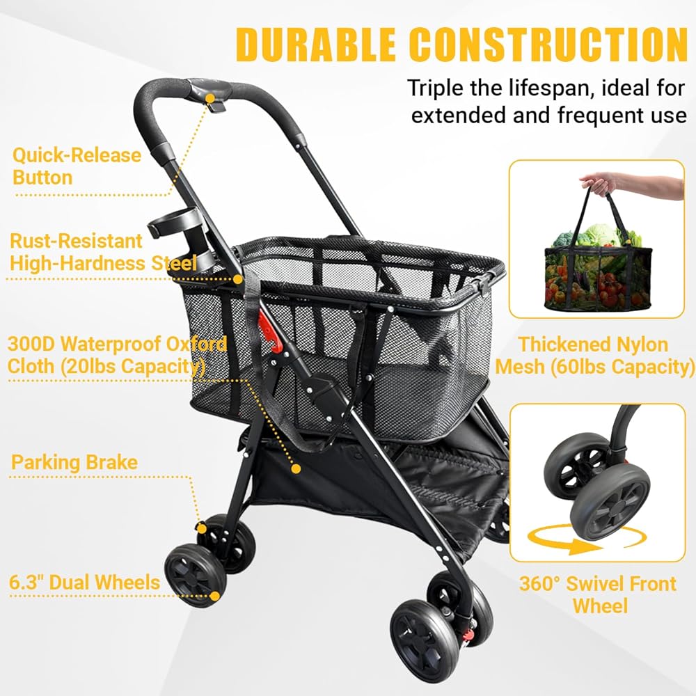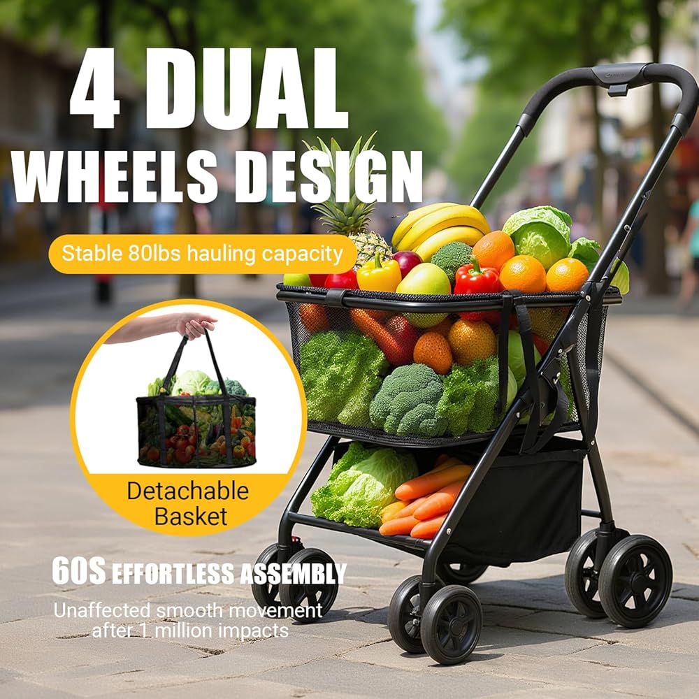 سعة كبيرة: بفضل مساحة تخزين تبلغ 40 جالونًا وتصميم سلة 2-في 1 قابلة للفصل ، فإن هذه العربة تحمل ما قيمته أسبوعًا من محلات البقالة. تعد المقصورة العلوية مثالية للعناصر الحساسة ، في حين يدعم القسم السفلي أحمالًا أثقل ، مع الحفاظ على كل شيء منظمًا بدقة