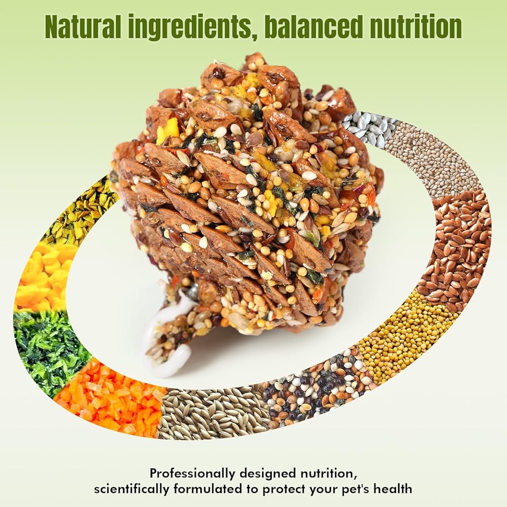ألعاب الحيوانات الصغيرة العضوية الصغيرة والوجبات الخفيفة: يتم تغطية مخاريط الصنوبر الطبيعية ببذور عباد الشمس والذرة المسحوقة والدخن والشوفان وقطع الخضار المجففة والأطعمة المختلطة الأخرى ؛ صفر إضافات اصطناعية. أسماء صياغة بأمان للطيور والسناجب والهامستر وخنازير غينيا والأرانب. نداء العلف المقرمش يسعد أكلة من الصعب إرضاءها بشكل طبيعي