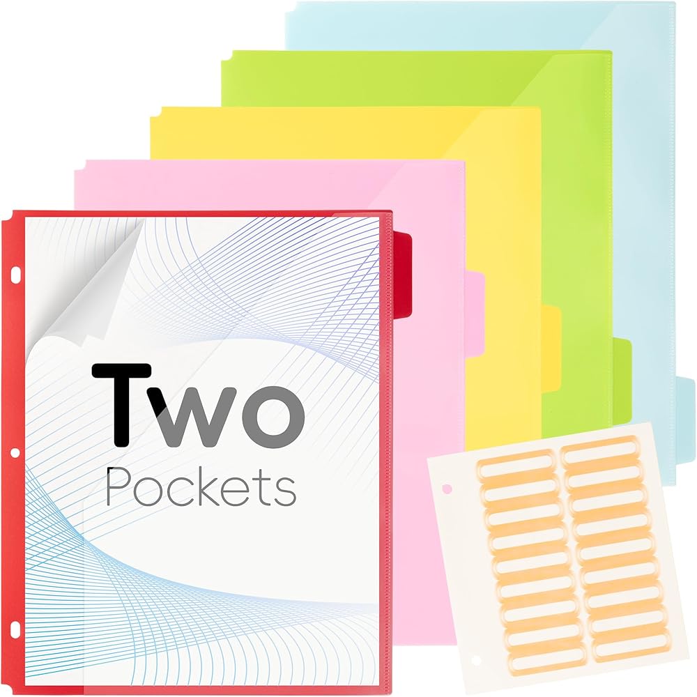 【المجلدات ذات الجيوب】 5 مجلدات بلاستيكية تحتوي على 10 جيوب ، وتتناسب مع جميع صفائح بحجم الحروف الأمريكية (11 "× 8.5") والمجلدات القياسية. إنها طريقة رائعة للحفاظ على تنظيم أوراقك ويمكن الوصول إليها بسهولة.