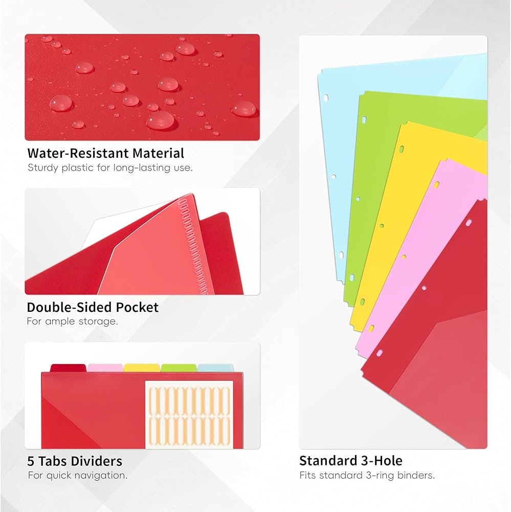 【المقسمات النابضة بالحياة】 حافظ على مواد الدراسة الخاصة بك ووثائق العمل منظمة بدقة ويمكن الوصول إليها بسهولة. تعزز الألوان النشطة سير العمل الخاص بك وتبسيط التصنيف.