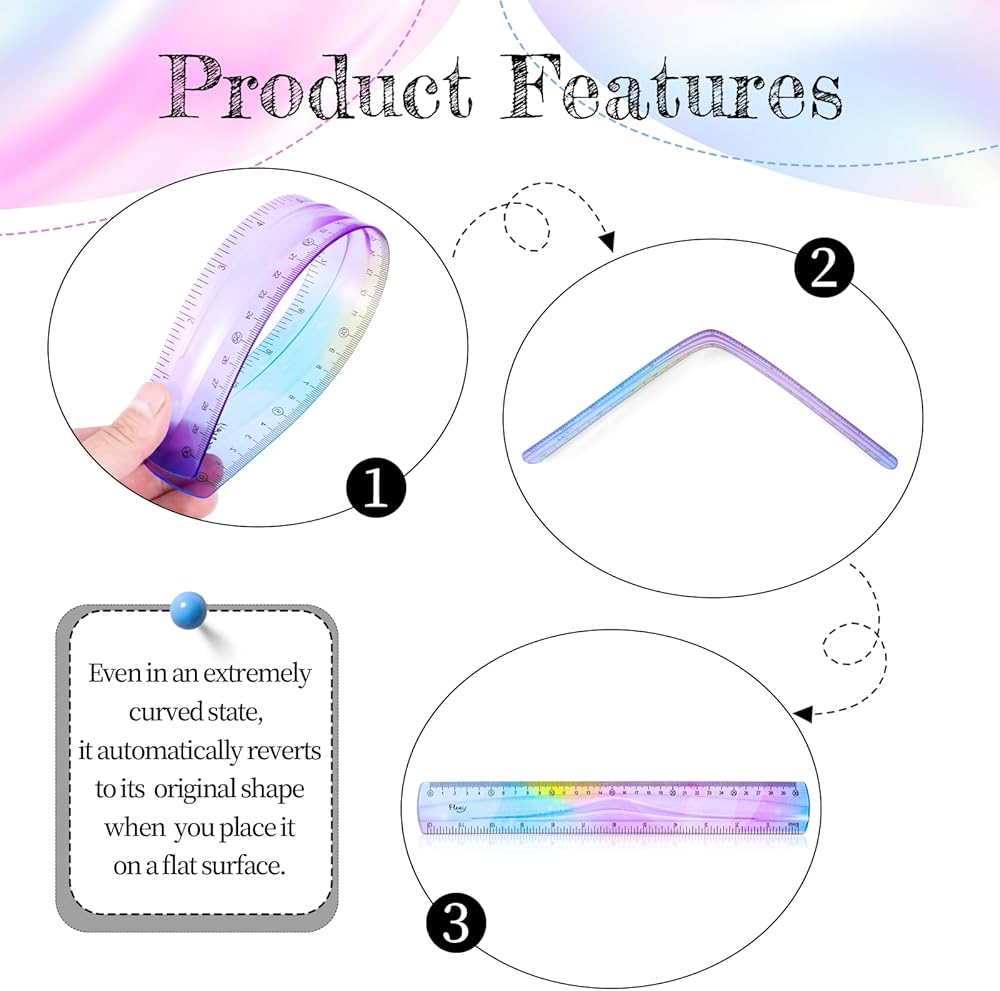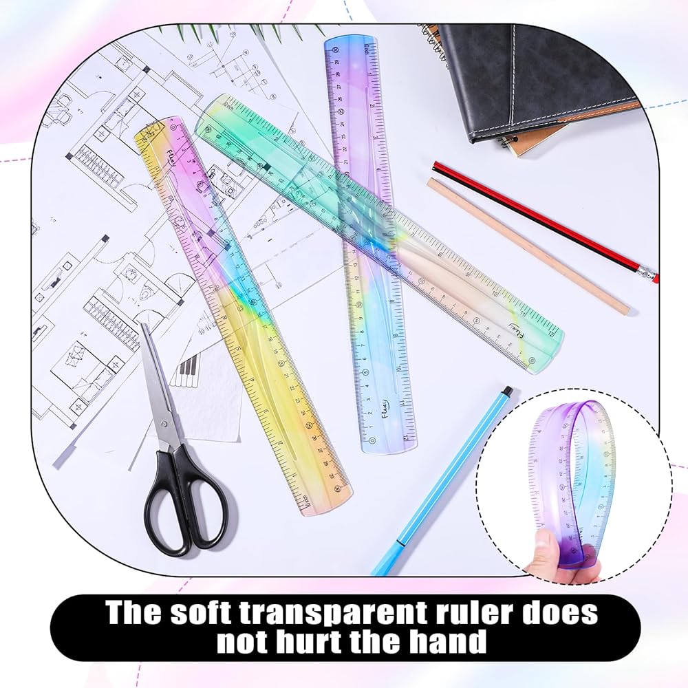 【High-quality materials】These colorful clear rulers are made of high-quality PVC. The flexible ruler is soft, bendable and shatterproof. The clear plastic ruler ensures durability and flexibility when measuring various surfaces.