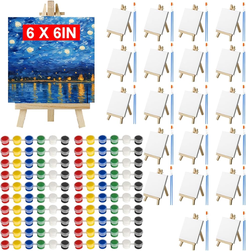 20 مجموعة مجموعة طلاء Canvas للأطفال: ستحصل على 20 حزمة 6 × 6 بوصات من اللوحات الصغيرة ، و 20 حزمة من الخشب ، و 60 فرشًا ، و 20 مجموعة من الطلاء الأكريليكي (تحتوي كل مجموعة على 12 لونًا من الطلاء) ، و 20 صوانيًا للطلاء ، وهي كافية لتلبية احتياجات الطلاء على نطاق واسع للأطفال.
