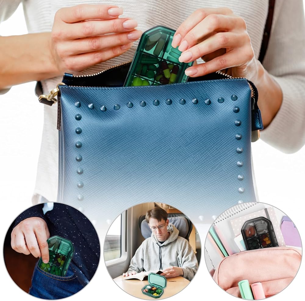 【مادة عالية الجودة】منظم حبوب الدواء للسفر مصنوع من مواد عالية الجودة آمنة غذائيًا، منظم الفيتامينات آمن ومتين ويمكن استخدامه لفترة طويلة. صندوق حبوب الدواء الصغير صلب للغاية وأكثر استقرارًا وأكثر ملاءمة لتخزين الأقراص.