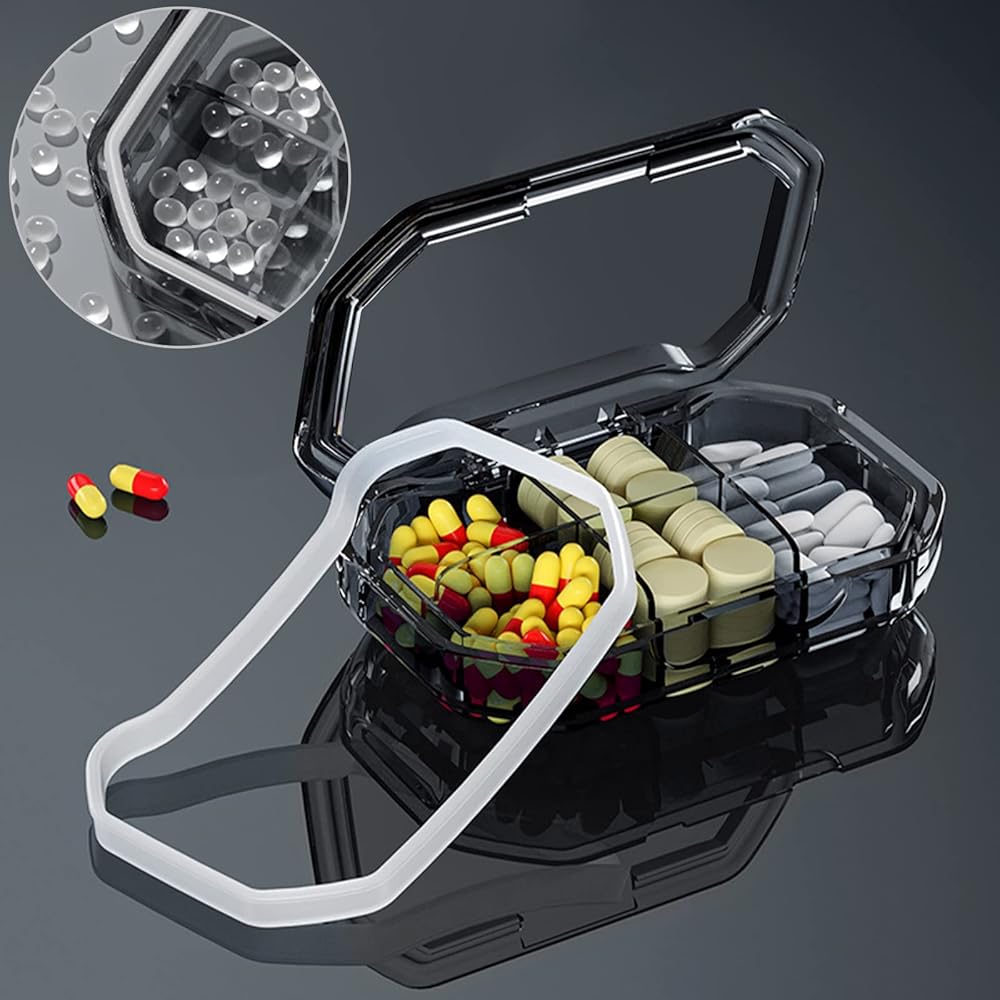 【إغلاق مزدوج】يستخدم الصندوق الخارجي الخاص بنا تصميم قفل، مع شريط إغلاق من السيليكون، مقاوم للماء والرطوبة، والصندوق الداخلي مغلق بشكل مستقل، مما يحافظ على خصائص الدواء ويمنع الروائح.
