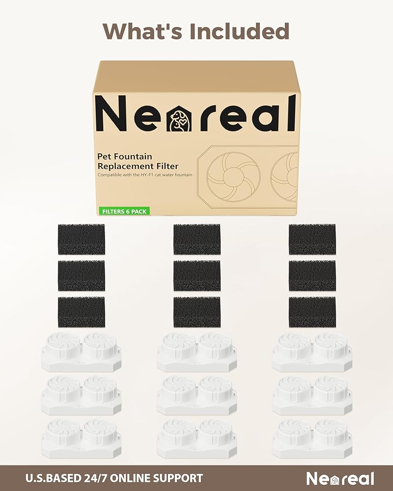 6 high-efficiency filters (1-2 weeks each) provide 6-12 weeks of continuous clean water. Ideal for multi-pet households—save time and money with fewer replacements.