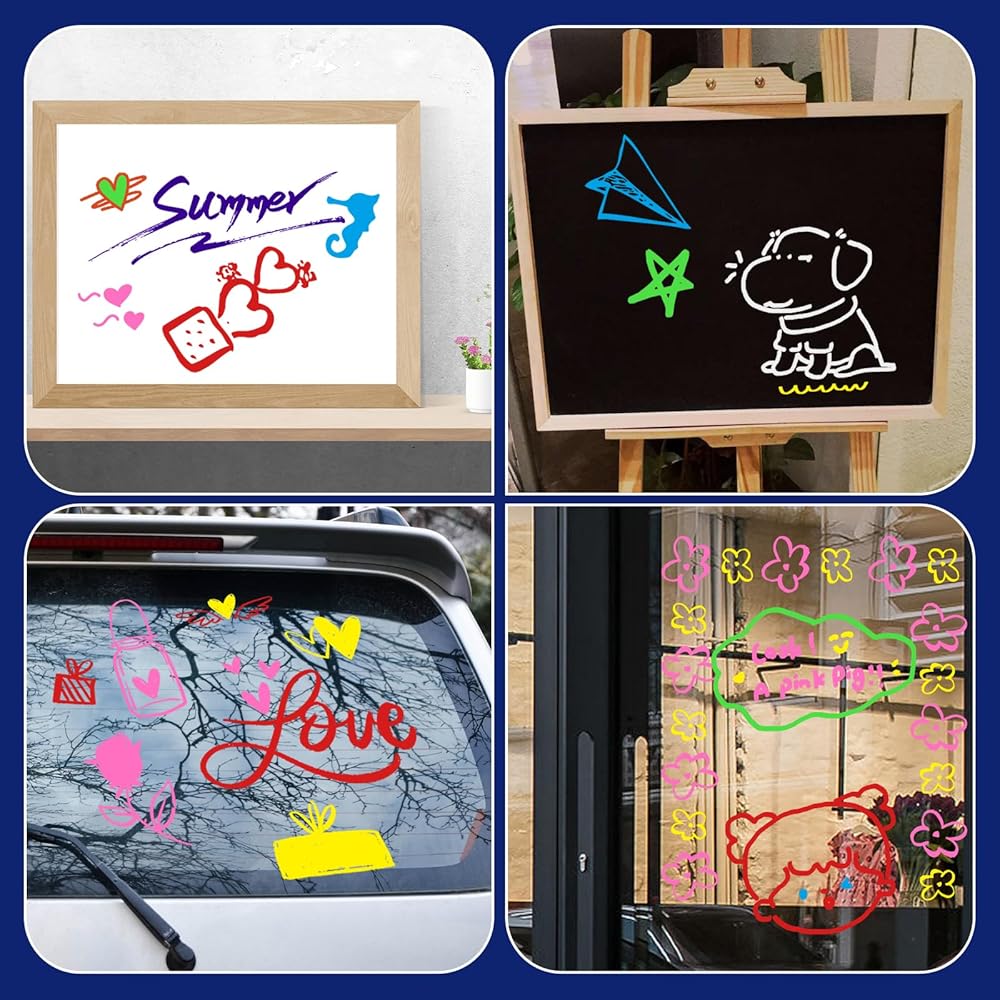 【براعة عبر الأسطح】 سواء كانت تستخدم كعلامات نافذة تلقائية أو للمشاريع القابلة للغسل الزجاجية ، تثبت علامات الطباشير Jumbo هذه تنوعها على أي سطح غير مسامي. مثالي لزينة السيارات ، والألواح البيضاء ، وألواح الطباشير ، وألواح البيسترو ، ولافتات عيد الميلاد ، والملصقات ، والعديد من الفنون والحرف اليدوية DIY.