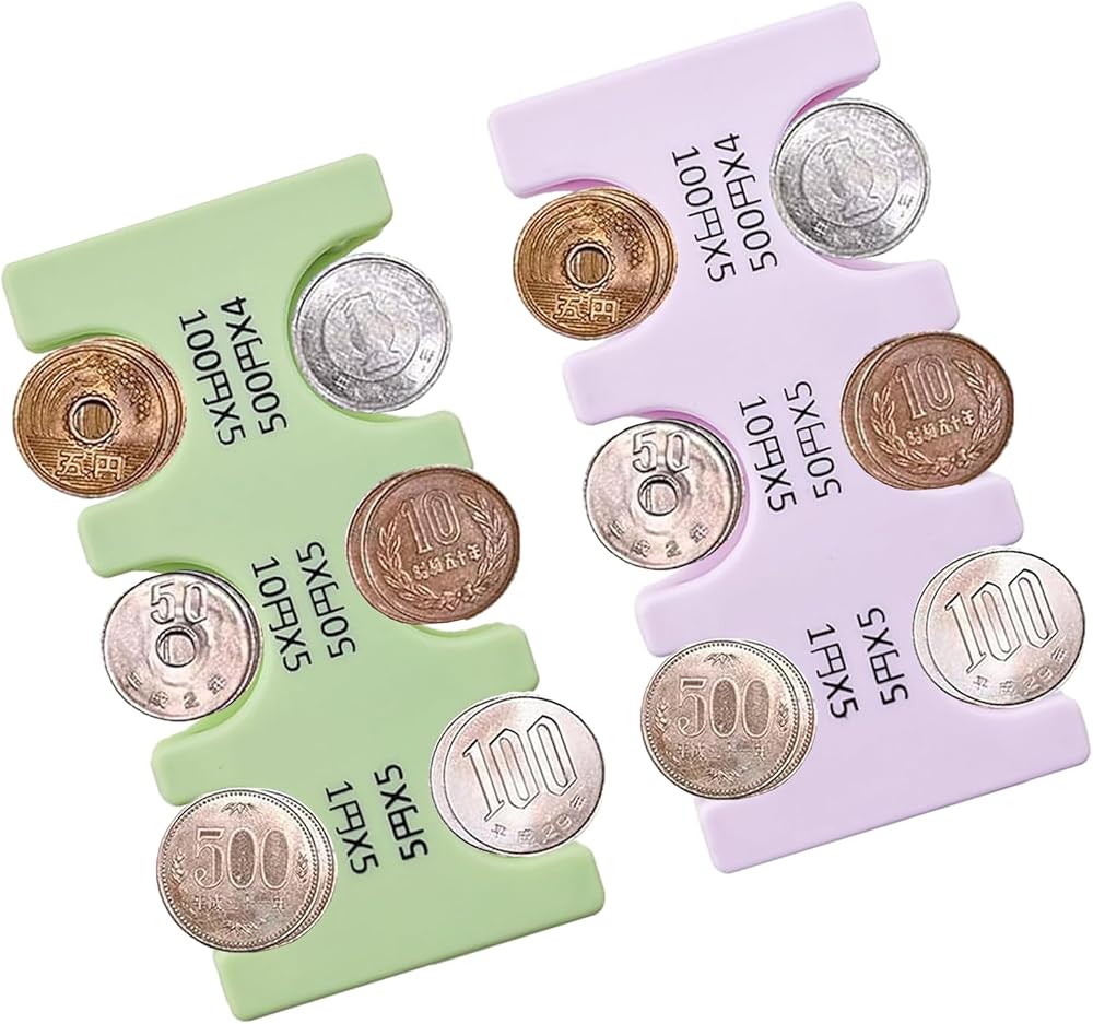 2 أجهزة الكمبيوتر اليابانية ينظم عملة اليابان منظم الحالات الصلبة وتخزين العملات المعدنية Coins Jpy Coin منظم وموزع ومحفظة لخزف العملة البلاستيكية مع 6 فتحات (خضراء فاتحة ، أرجوانية خفيفة)