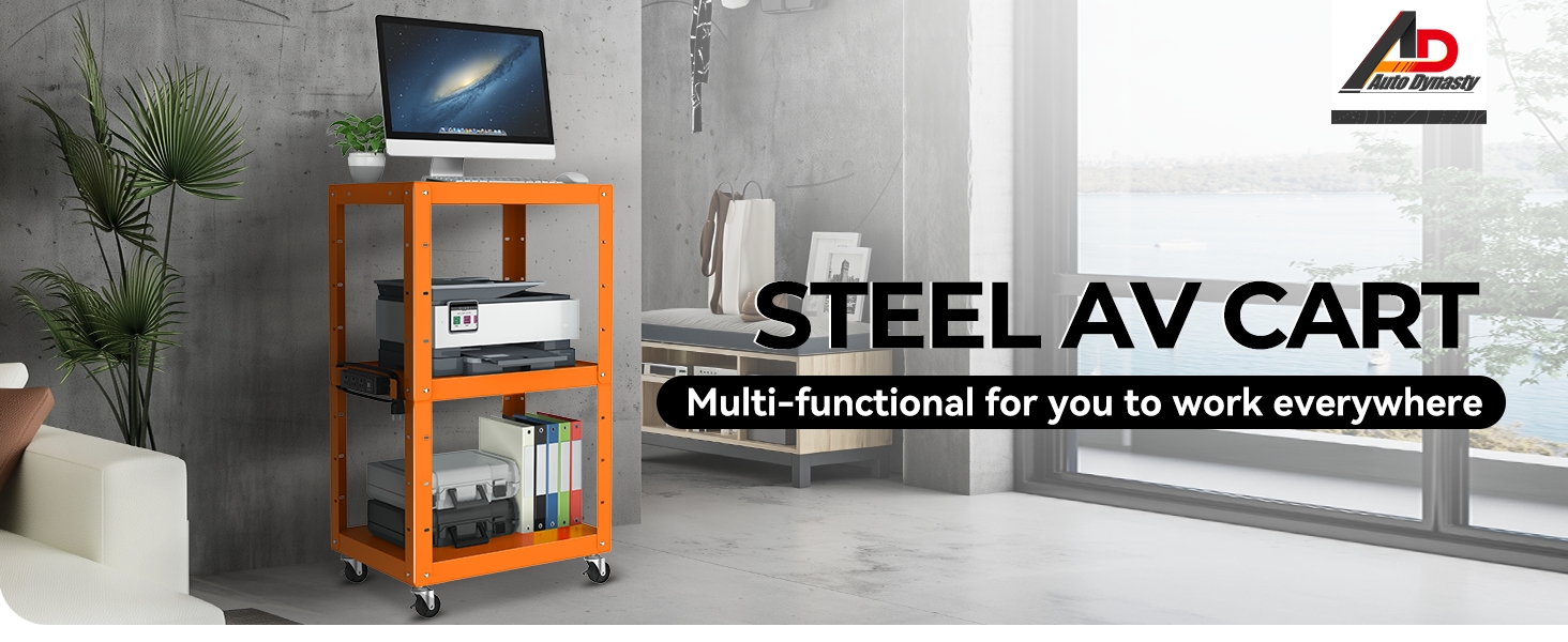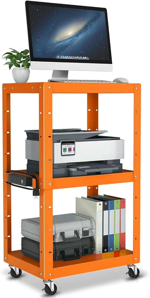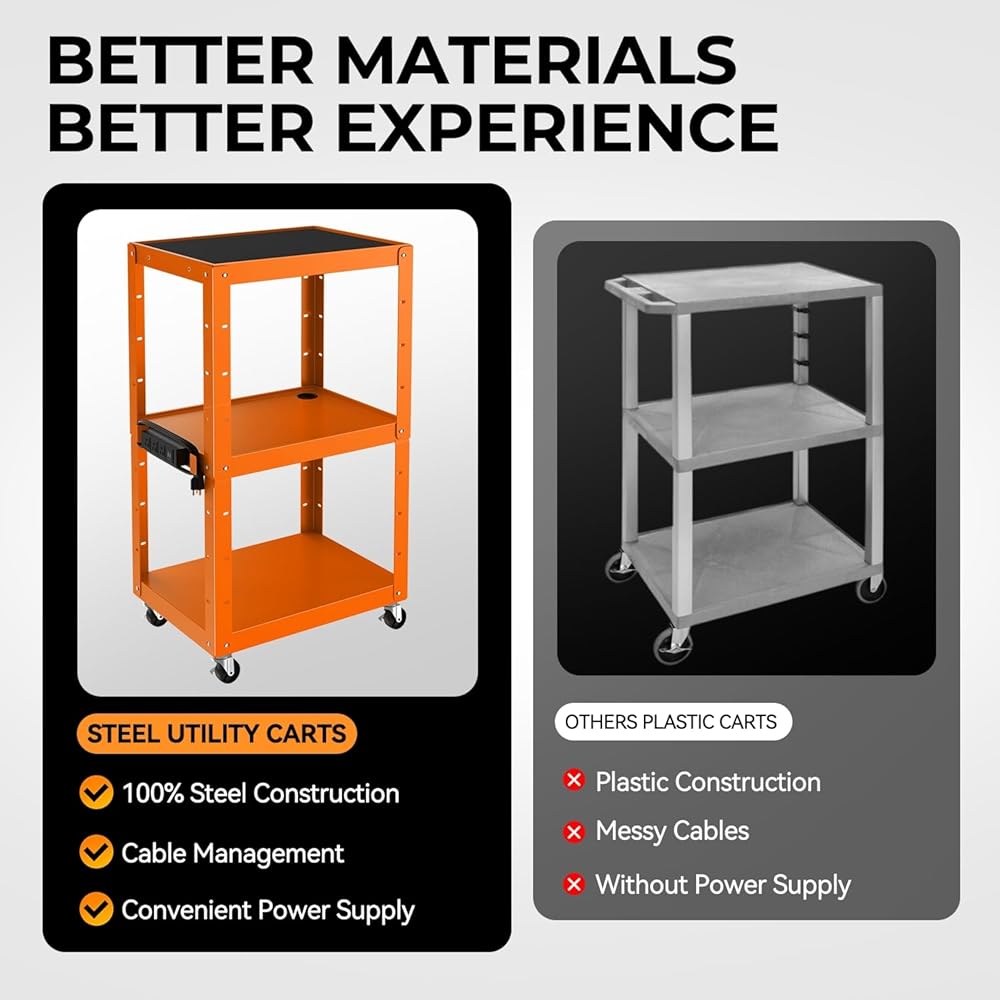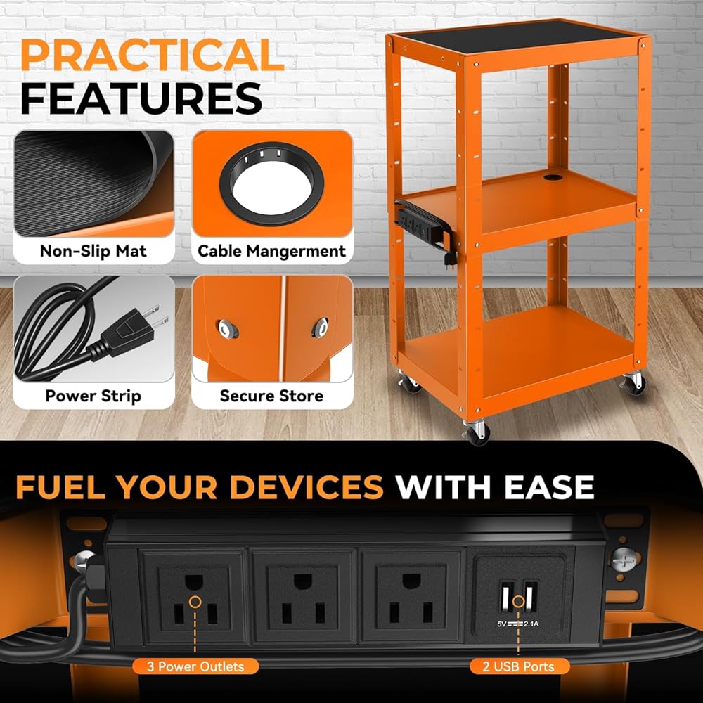 عربات العرض التقديرية Auto Dynasty Auto AV مع شريط الطاقة ، عربات AV للتخزين المتداول لجهاز عرض الفيديو ، التلفزيون ، الطابعات ، أجهزة الكمبيوتر المحمولة ، 4 عجلات ، سلك 4 بوصات ، 3 منافذ ، 2 منافذ USB (برتقالي)