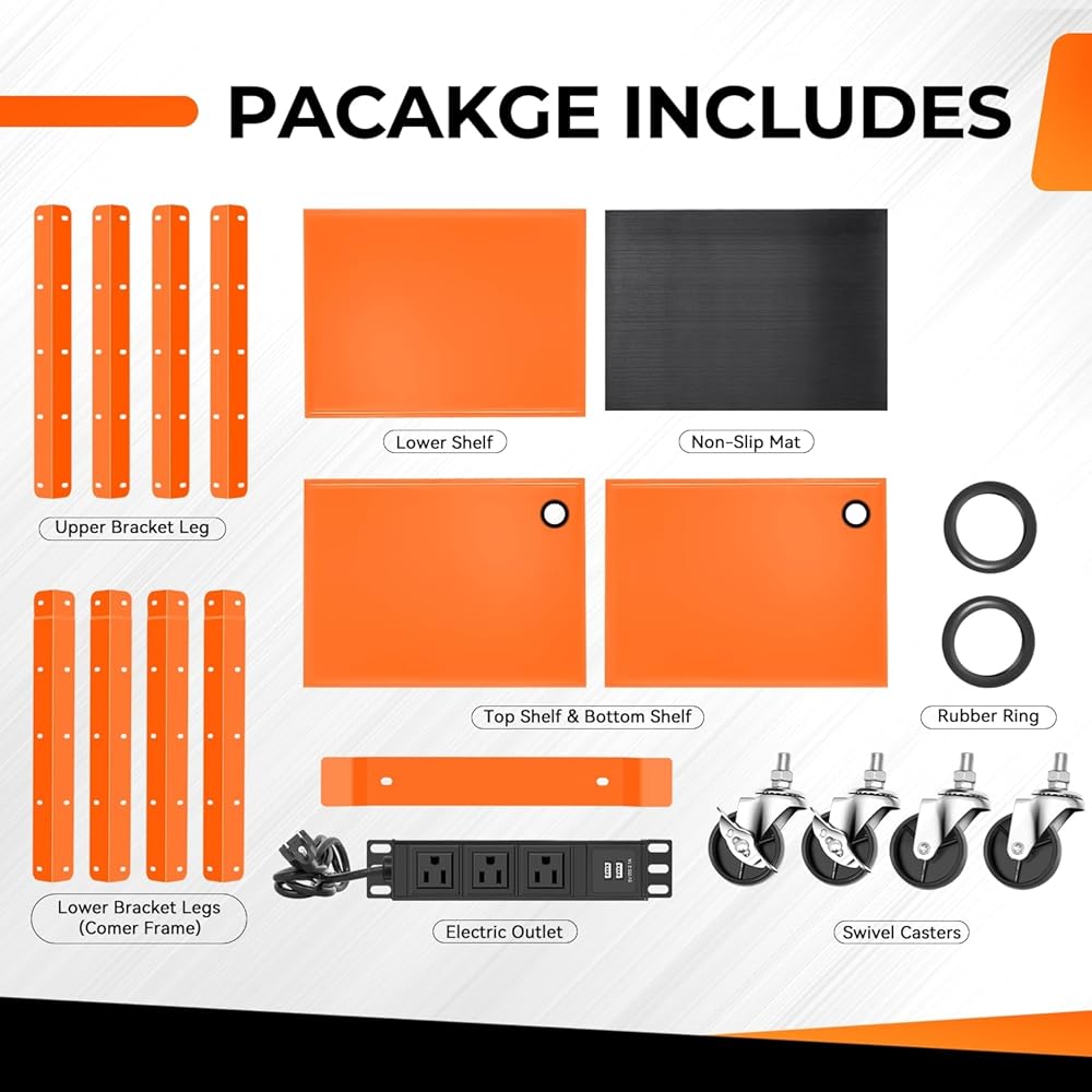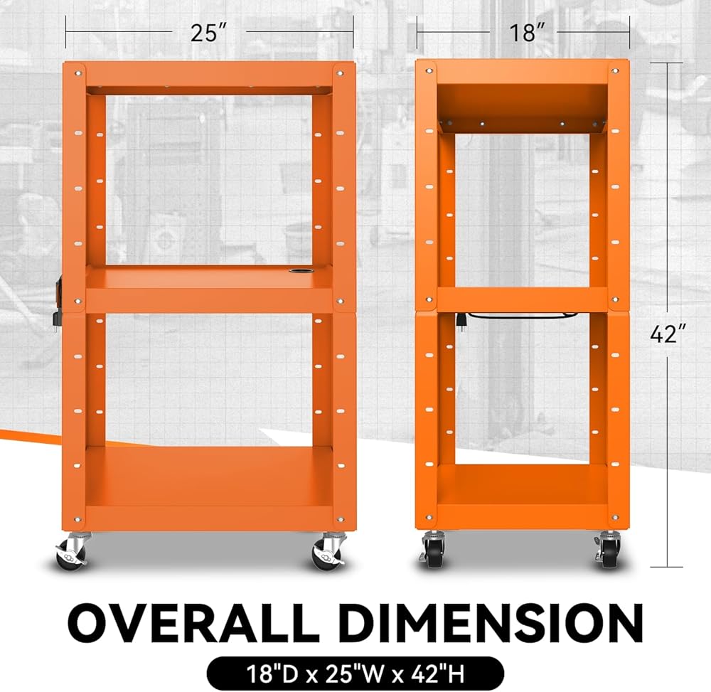 【تم تصميمه متعدد الأغراض ومحمولة】 تم تصميمه مع عجلات دوارة عالمية 4 × 360 درجة (عجلتان فرامل قفل) ومنفذ كهربائي. يمكن نقله بسهولة وأمان ، مما يوفر لك أكثر من موقع عمل واحد لاستخدامه ، مثل المرآب أو المستودع أو ورشة العمل.