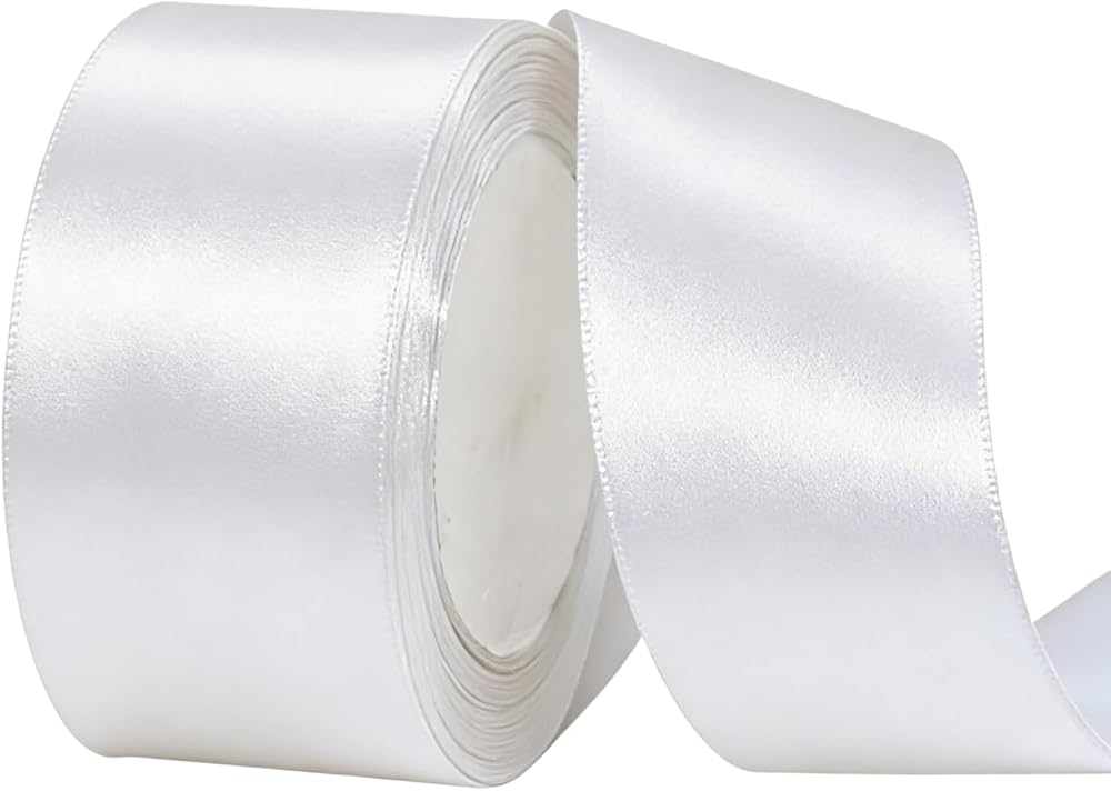 2 "على نطاق واسع على وجه الساتان لفة الساتان لحفل الزفاف ، ومشاريع الخياطة ، ولف الهدايا وصياغة مشاريع ، 25 ياردة (أبيض)