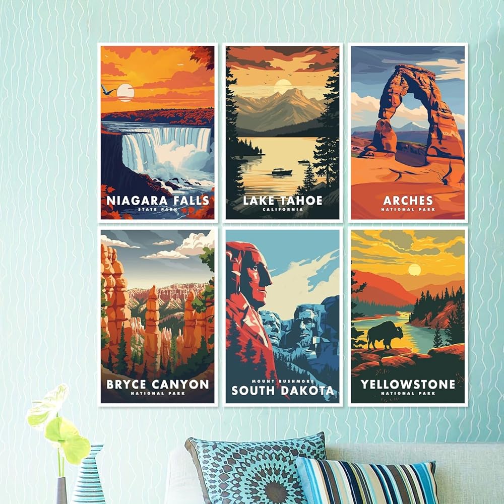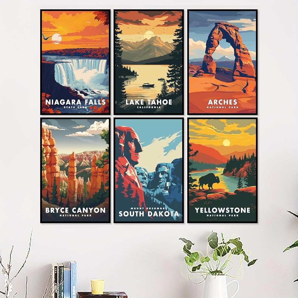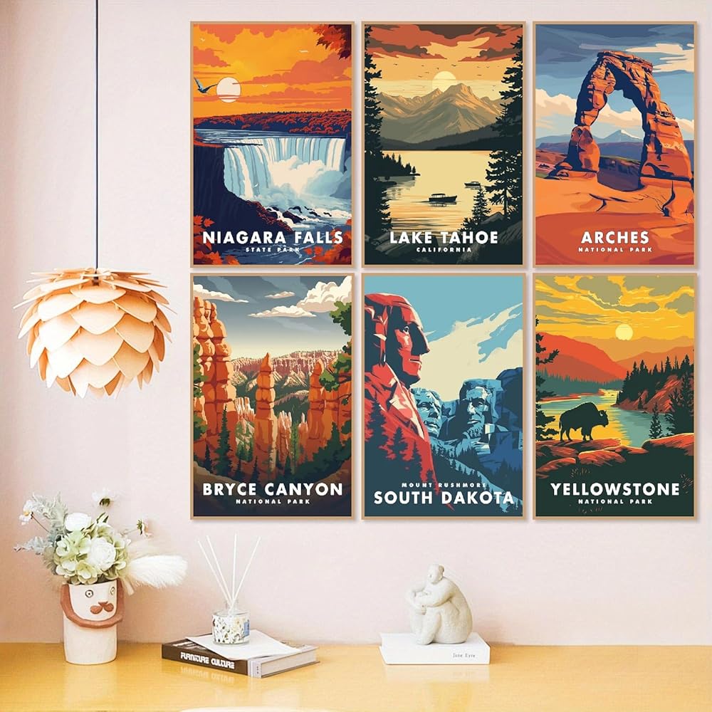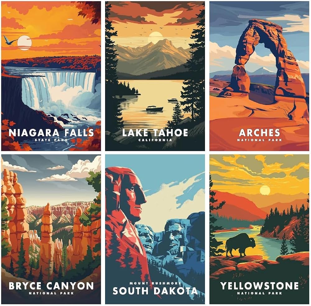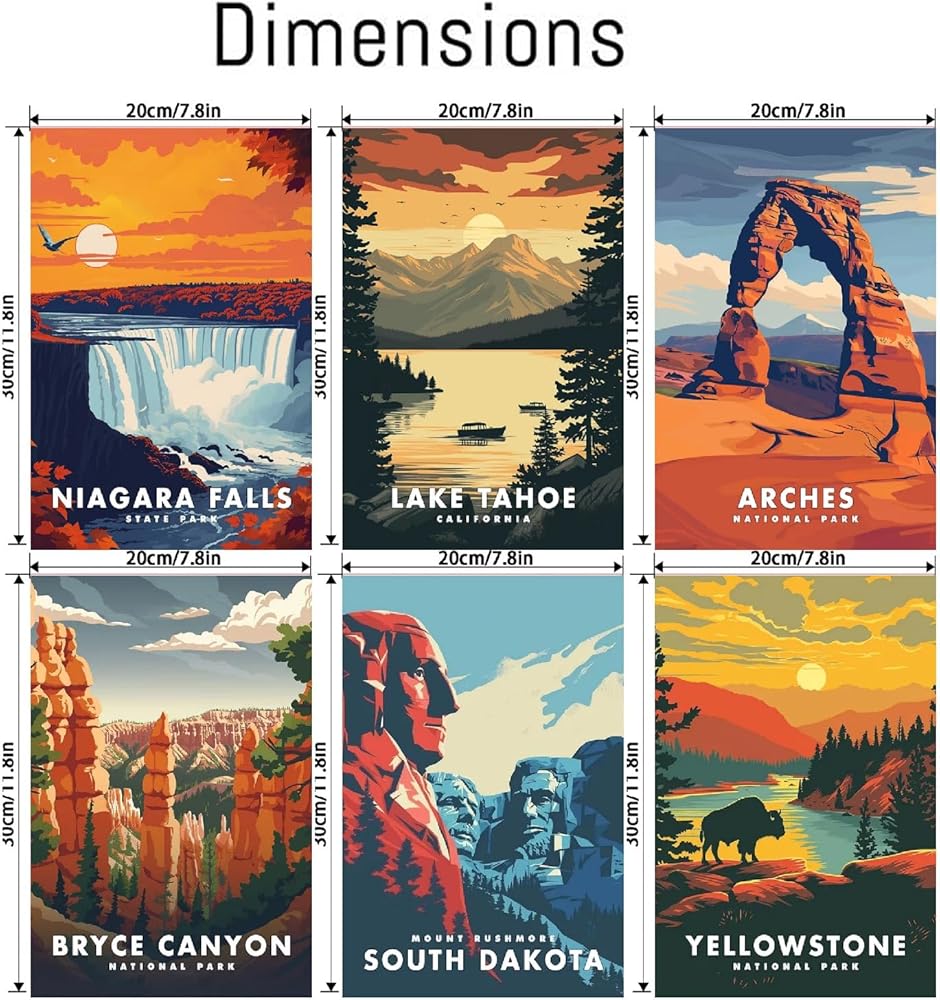 6 حزم الطلاء من أرقام أرقام للبالغين ، الطلاء الوطني Easy Park للبالغين من قبل مجموعات الأرقام على القماش ، مجموعة الطلاء الزيتية المناظر الطبيعية للمبتدئين مجموعات الطلاء من أجل ديكور الجدار المنزلي 8x12 بوصة