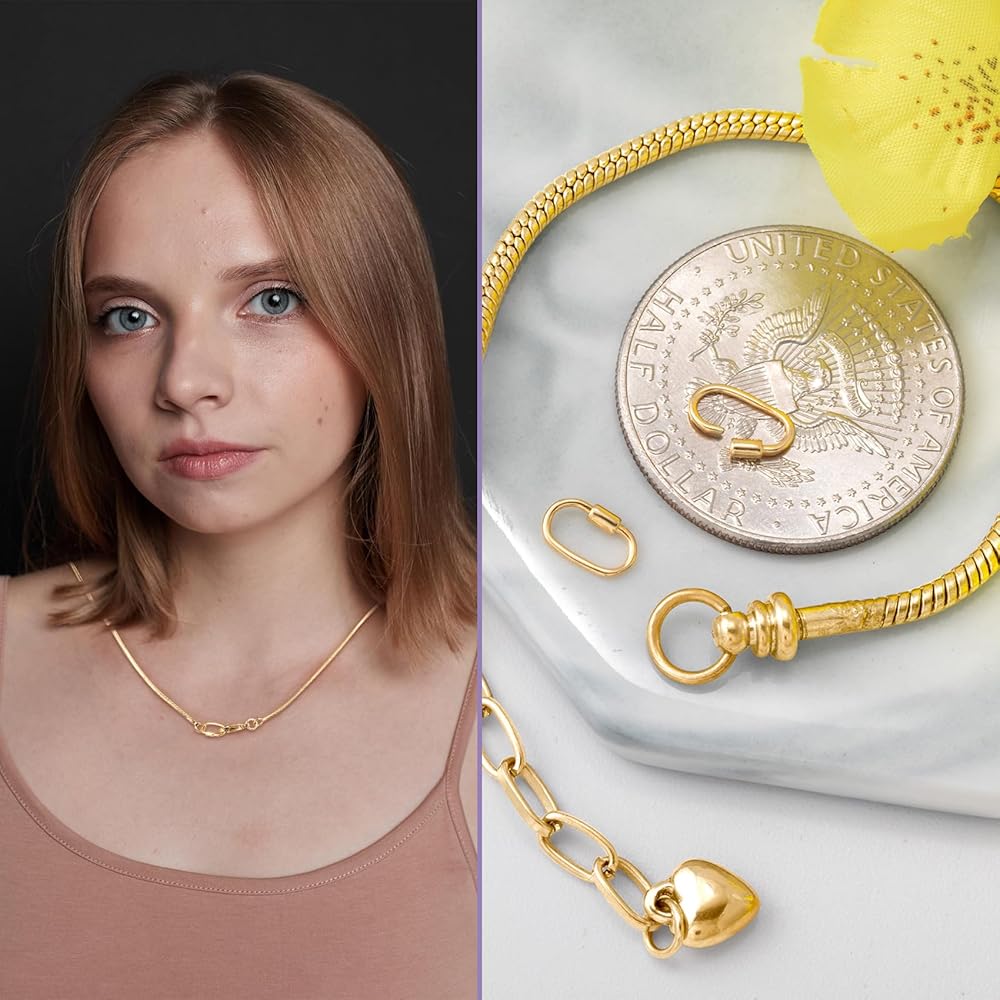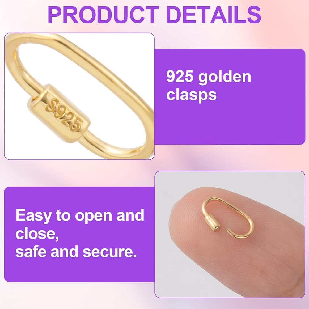 Compact Size: Each oval screw carabiner locks measures 0.63 x 0.32 x 0.1 in (16 x 8.2 x 2.5 mm), compact size for provide you with secure connections in your delicate chains, charm, or DIY crafts without bulkiness