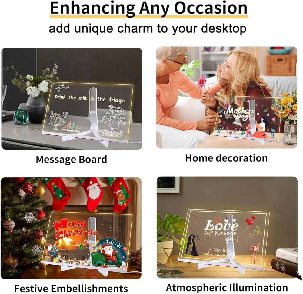 【هدية رائعة】 يمكنك كتابة تمنياتك الطيبة أو الكلمات المضحكة أو التعبيرات القلبية على لوحة الكتابة LED ، ويمكن استخدامها لكتابة عيد ميلاد ، وعيد الحب ، وعيد الأم ، وعيد الشكر ، وعيد الميلاد ، ورغبات العطلات الأخرى. يمكن أيضًا وضع لوحة LED كضوء قراءة إبداعي ، وضوء ليلي ، ومصباح مكتب في غرفة/غرفة نوم للأطفال/عرين ، مناسب للمنزل ، المكتب ، السفر.
