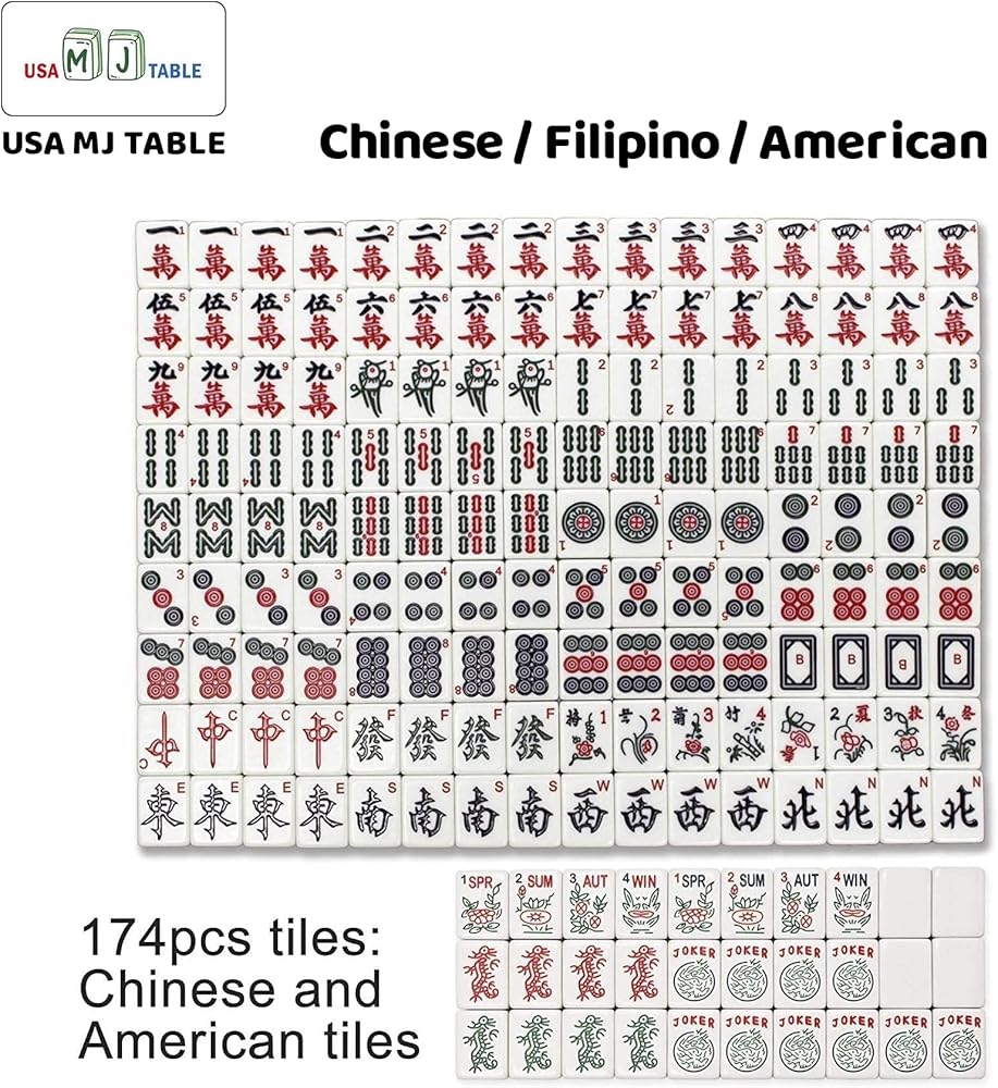 166 البلاط الحجم الكامل حجم مجموعة Mahjong الأبعاد: 110 سم × 101 سم × 77 سم شملت 1 طاولة مهجرية أوتوماتيكية + 2 مجموعات من البلاط المغناطيسي 144 البلاط (1 أزرق و 1 أخضر) tabletop الندرج ، الطول ، 5 أقدام ، النرد والبدء في اللعب في 3 ثوان!