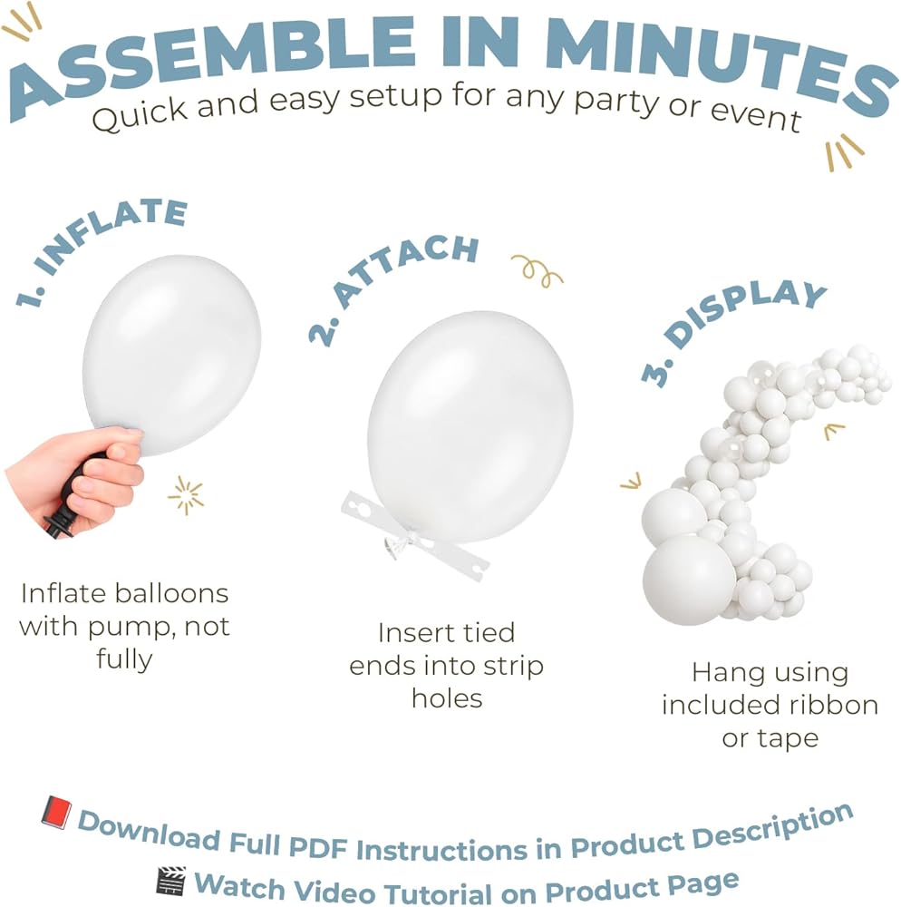 🛠 إعداد DIY سهل - قم ببناء إكليلك أو قوسك في دقائق مع شريط بالون 16 قدمًا وفة من نقاط الغراء. لا توجد مهارات أو أدوات خاصة مطلوبة - مجرد تضخيم وتزيين!