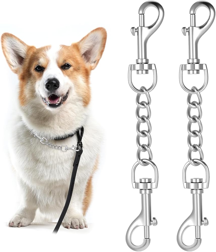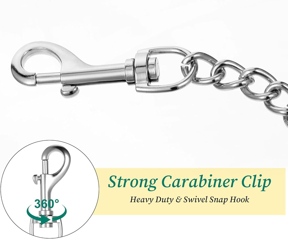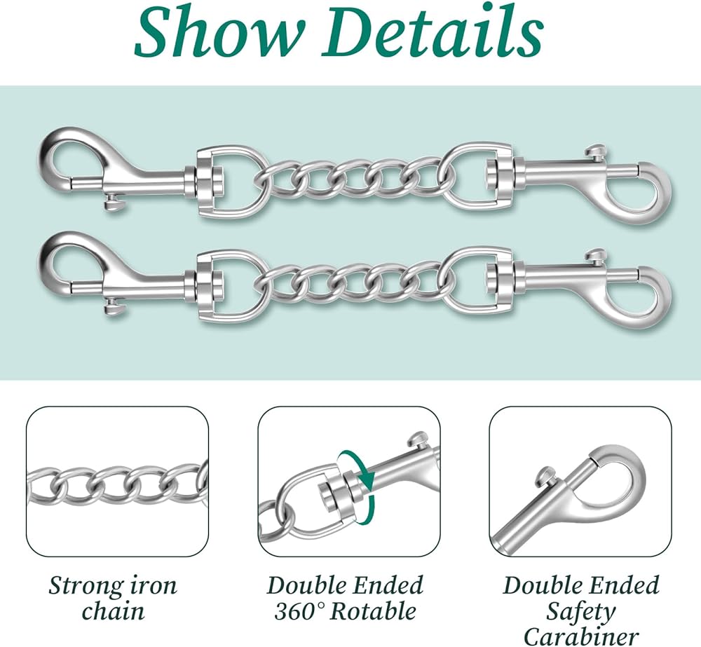 【Durable Construction】Made from high-quality iron chain and zinc alloy clips, this dog collar safety clip is built to withstand the rigors of daily use, providing a strong dog collar accessory that prevents accidental escapes.