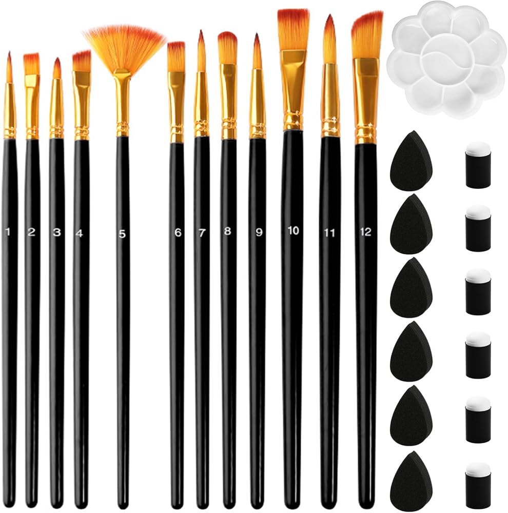 مجموعة فرش طلاء 12 قطعة من فرش رسم الوجه والإسفنج، مجموعة احترافية للألوان المائية الزيتية، وتفاصيل مصغرة، وفرشاة رسم فنية، والرسم الصخري للأطفال البالغين (أسود)