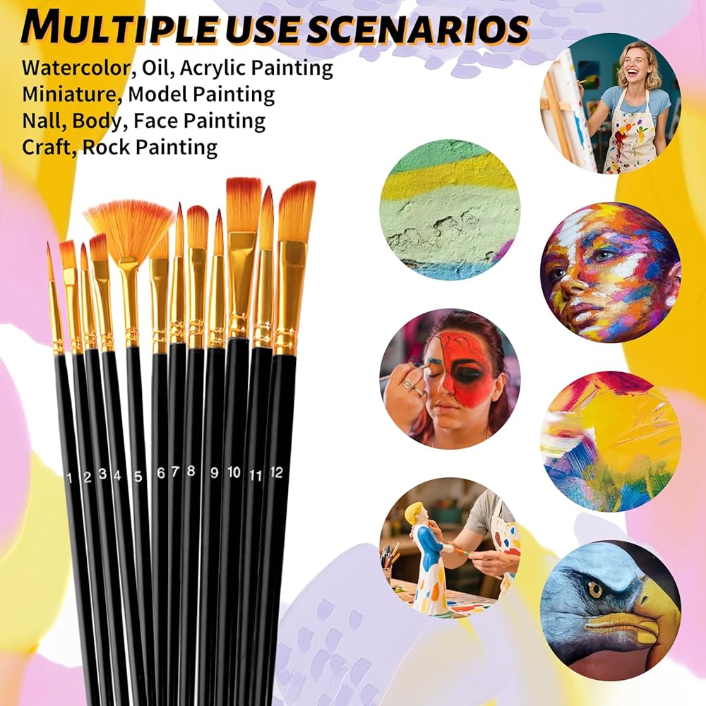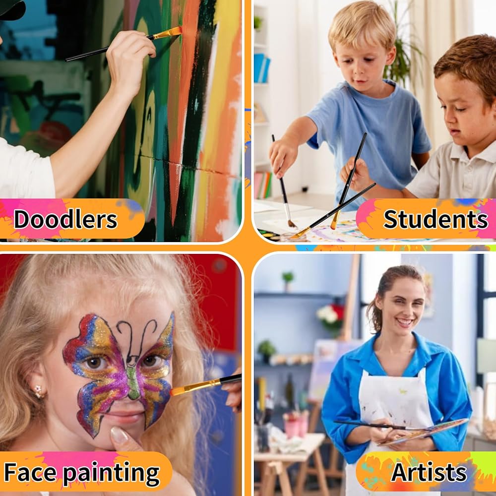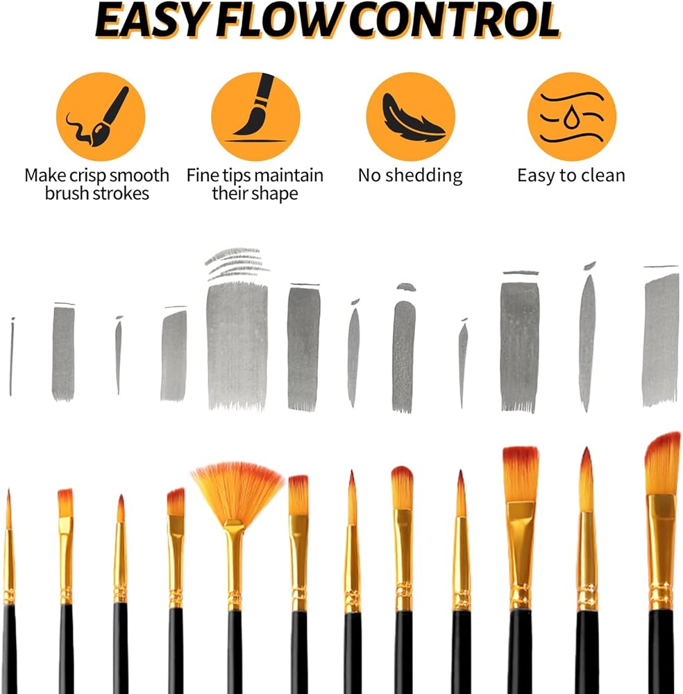 brushes 🖌multi-size frushes: سواء كنت هواة أو محترفًا ، ستساعدك هذه المجموعة من فرش الفنانين على إنشاء أعمال فنية مذهلة! يمكن تحقيق تأثيرات محكم مثل العشب والشعر والخطوط الدقيقة ، وتمنحك مجموعة واسعة من الأشكال والأحجام الكثير من الخيارات. يشمل أشكال مسطحة ، زاوية ، أشعل النار ، البندق ، البتلة ، المستديرة والخطية