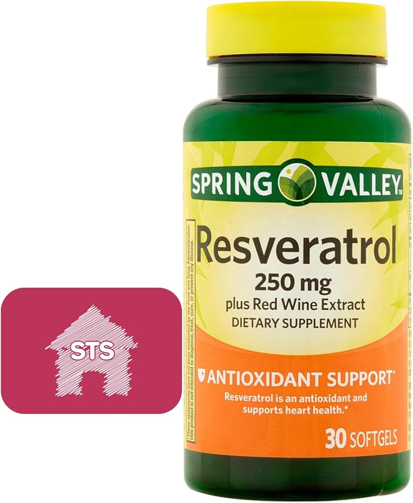 سبرينج فالي ريسفيراترول بلس مستخلص النبيذ الأحمر 250 مجم، 30 قطعة + ملصق STS.