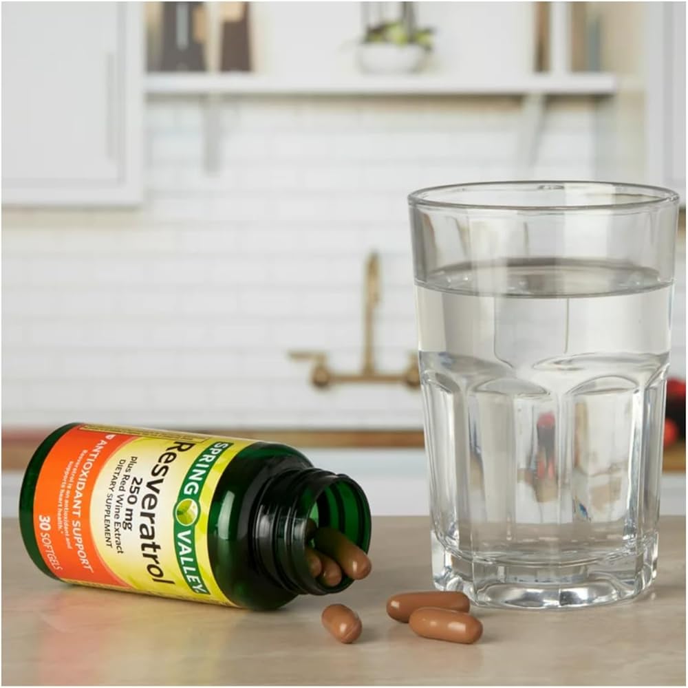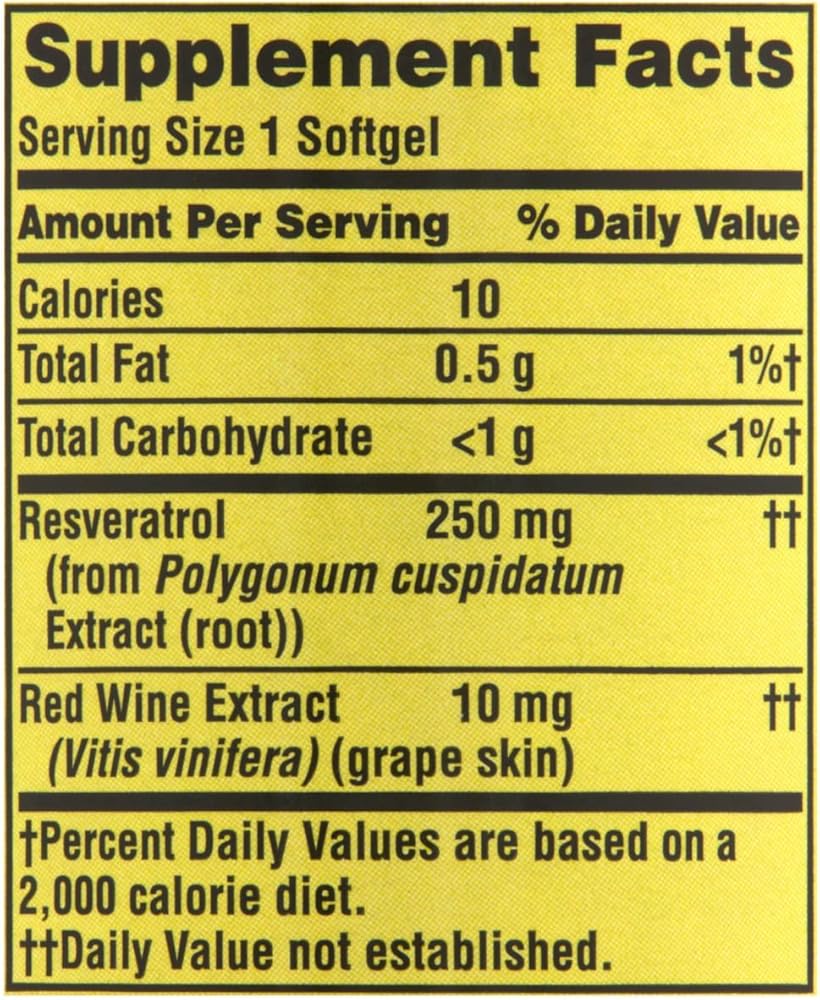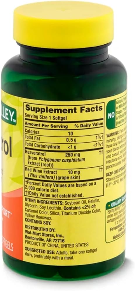 Resveratrol plus Red Wine provides antioxidant support to contribute to your overall health. With no gluten, yeast, milk, lactose, sugar or preservatives, these Spring Valley softgels are safe for those with food allergies and are easy to swallow.