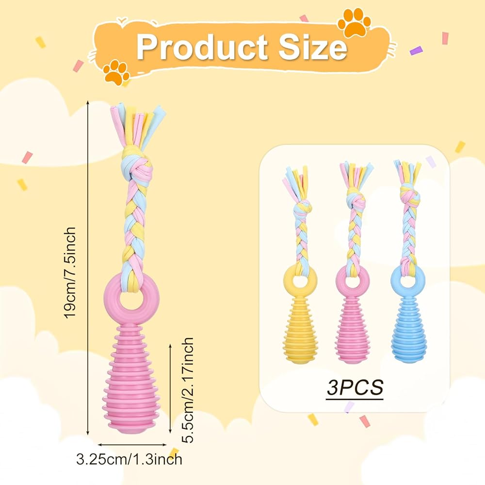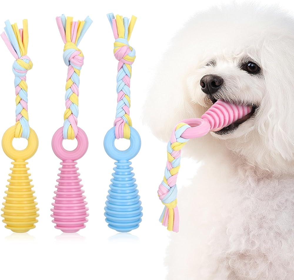 When the dog bites the puppy teething toys which will make a sound to attract the dog's attention and increase their interest in playing.