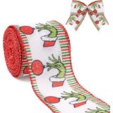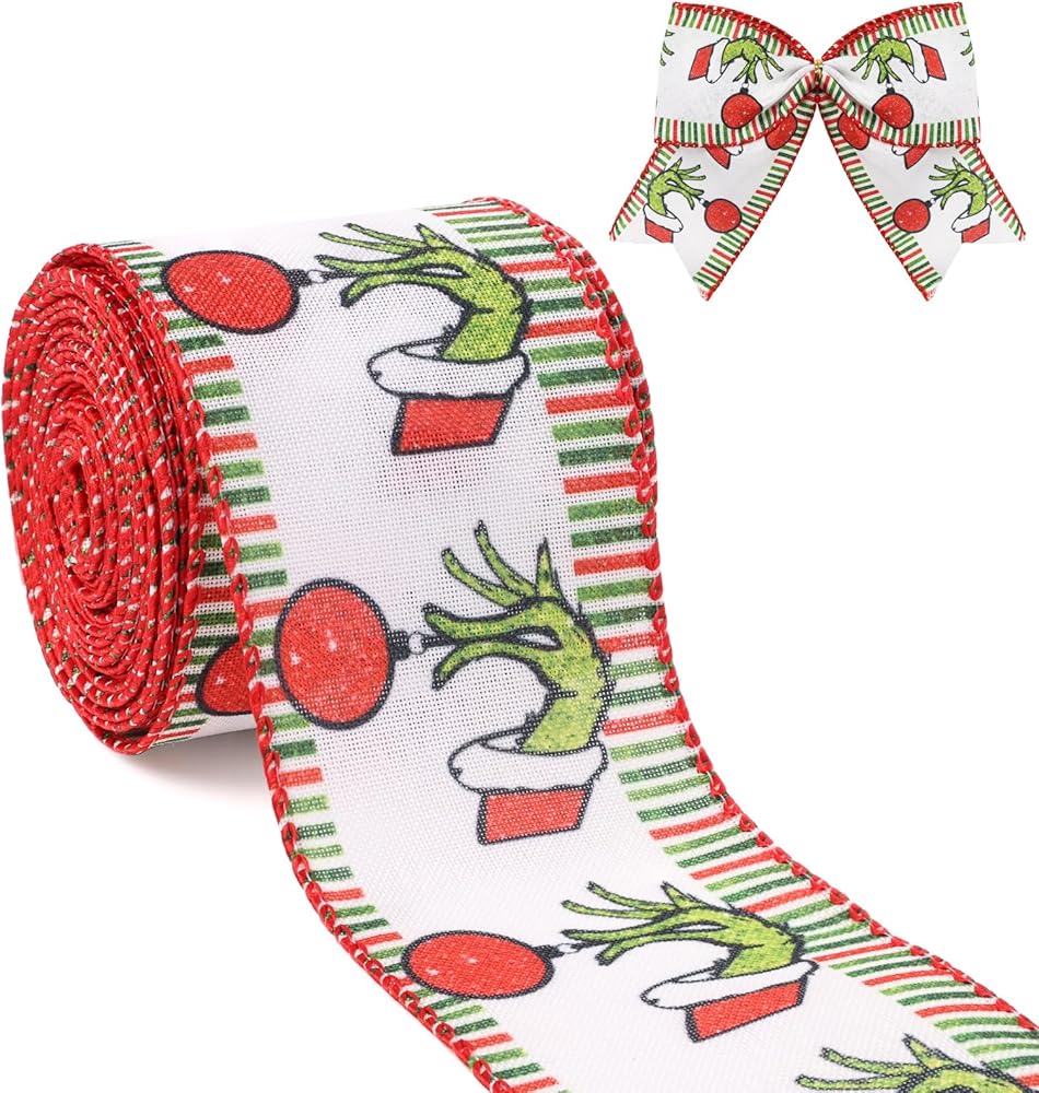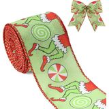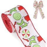 شريط عيد الميلاد للشجرة ، والأخضر الأحمر مضحك عيد الميلاد كرتون شرائط سلكية جرس النسيج الشريط هدية التغليف DIY كولبة الزهر الأقواس صنع الديكور شجرة عيد الميلاد ، 10 ياردة × 2.5 بوصة