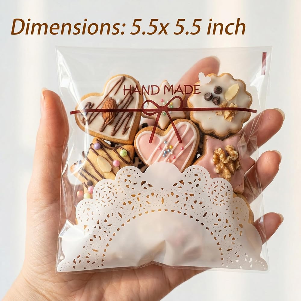 • الحجم: أكياس السيلوفان الخفيفة الواضحة الجميلة حوالي 5.5 × 5.5 بوصات/14 × 14 سم ، وطول المادة اللاصقة الذاتية حوالي 1.18 بوصة/3 سم