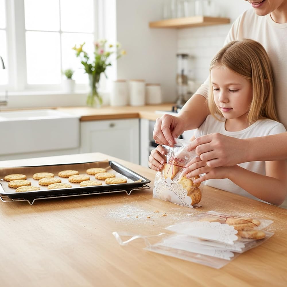• المواد: مصنوعة أكياس تغليف ملفات تعريف الارتباط اللطيفة من OPP من فئة الطعام ، غير سامة ، آمنة ، متينة. مع شريط الختم ، يساعد على تخزين الحلوى الطازجة وملفات تعريف الارتباط وليس من السهل كسرها