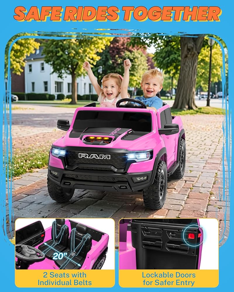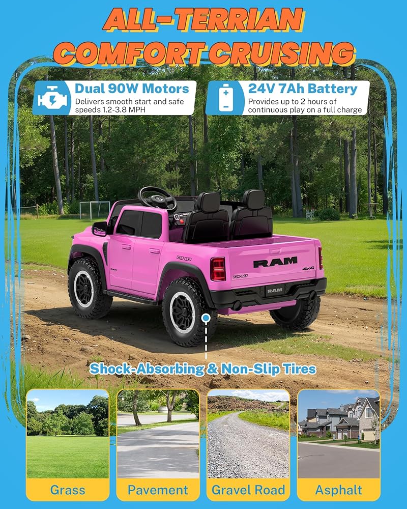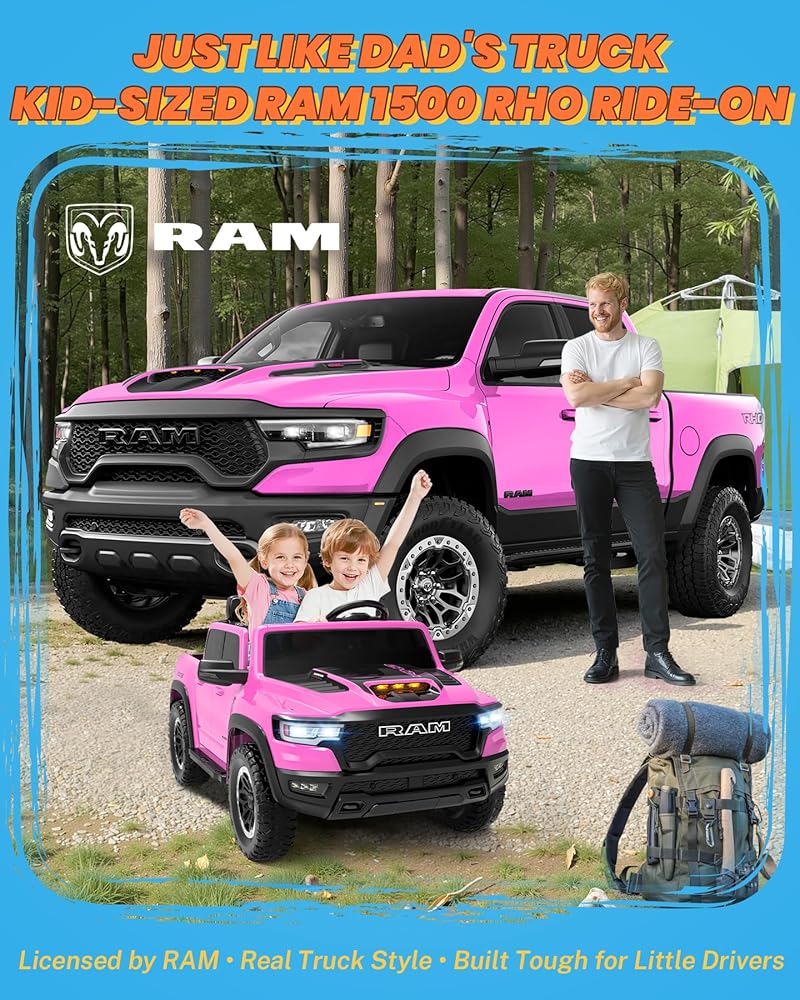 Give your little adventurer the thrill of driving a real Ram 1500 RHO! This officially licensed electric ride-on truck combines jaw-dropping realism with parent-approved safety and high-tech fun.