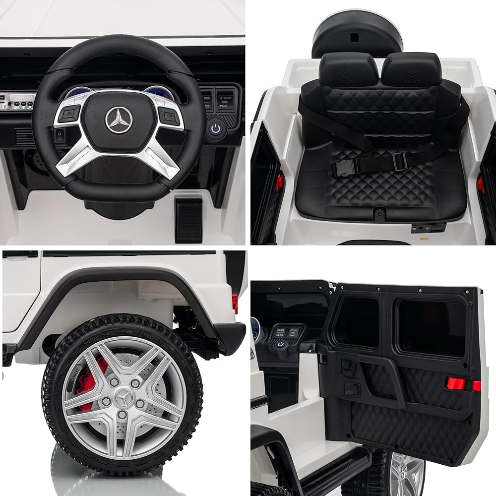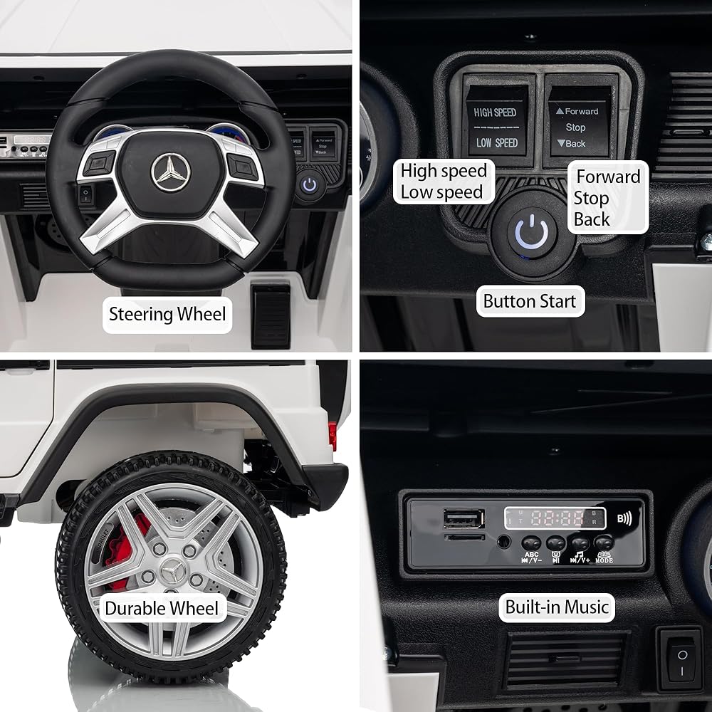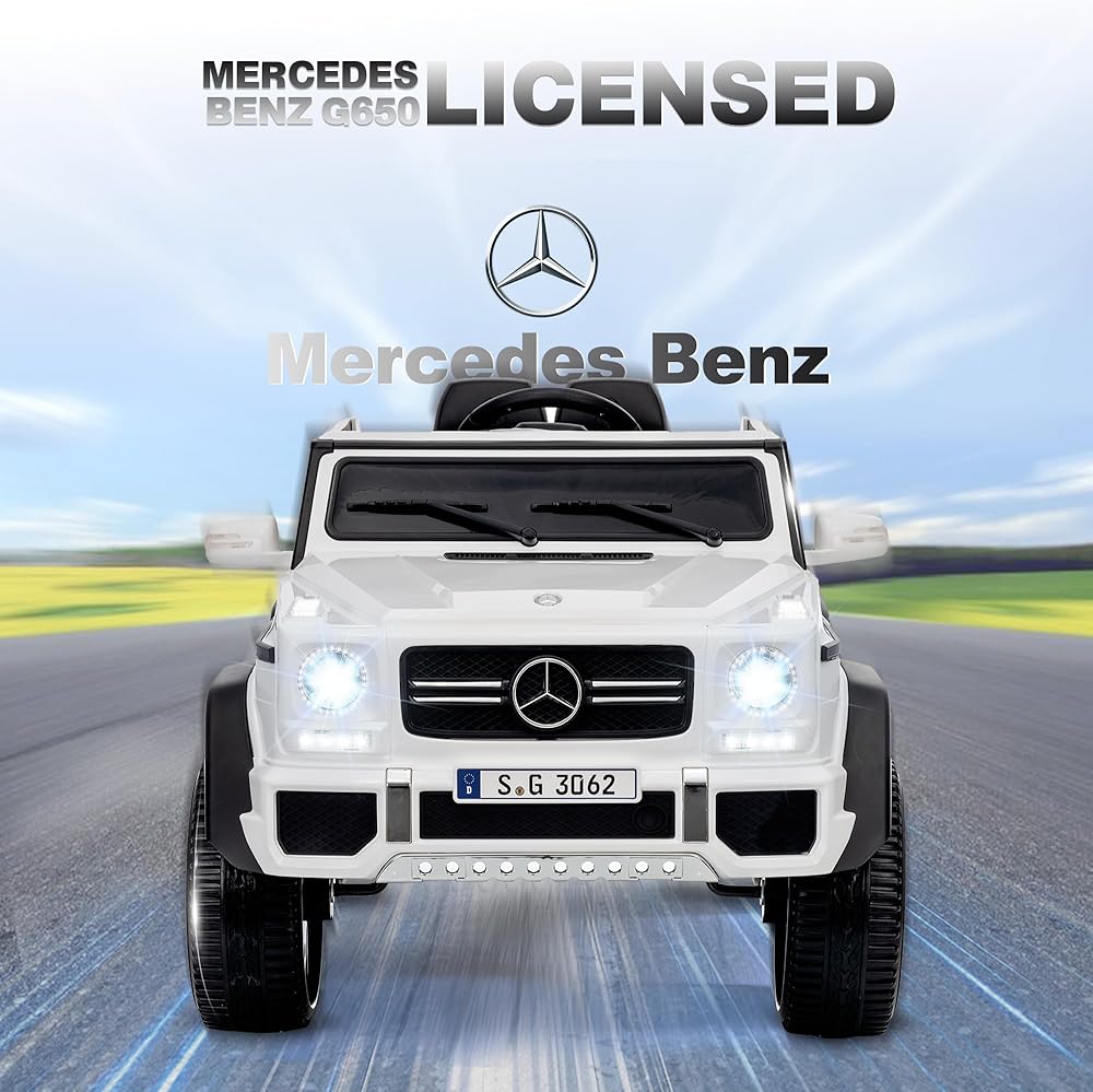 🚗 مرسيدس-بنز G650 المرخص لها: يركب سيارة مرسيدس بنز على السيارة للأطفال يمنح أطفالك طفولة سعيدة مع تجربة قيادة واقعية ، وميزات سيارة مرسيدس بنز مع عجلة قيادة ، ودواسة ، أو قرن ، أو صوت ناعم ، ومصابيح الأمامية ، ومقعد واحد ، وحزام أمان من نقطة ، وأسفل أمان قابلية ، أو قفل 4 أزرار. التحكم ، والبطارية القابلة لإعادة الشحن ، وبدء زر ، والتحكم في وضعين ، أو محرك الأطفال أو التحكم عن بُعد الأصل ، وامتصاص الصدمات 4 عجلات.