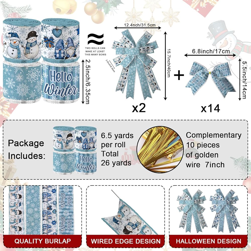 مجموعة الشريط: يبلغ طول كل منها 2.5 بوصة وطول 6.35 ياردة ، مما يوفر ما مجموعه 26 ياردة من المواد - مثالية لتحقيق جميع احتياجاتك الصياغة. يضمن الحجم السخي أن يكون لديك ما يكفي من الشريط لإنشاء قطع زخرفية متعددة ، من أكاليل الزهور الكبيرة إلى الأقواس المعقدة.
