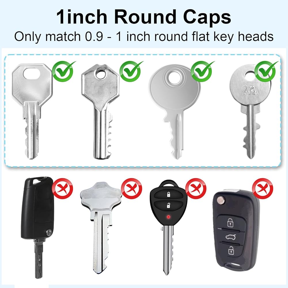Versatile Fit: Measuring 2.3cm/0.905in in diameter, these keycaps are suitable for most standard house keys. Not recommended for square or odd-shaped keys, or ignition keys for vehicles.