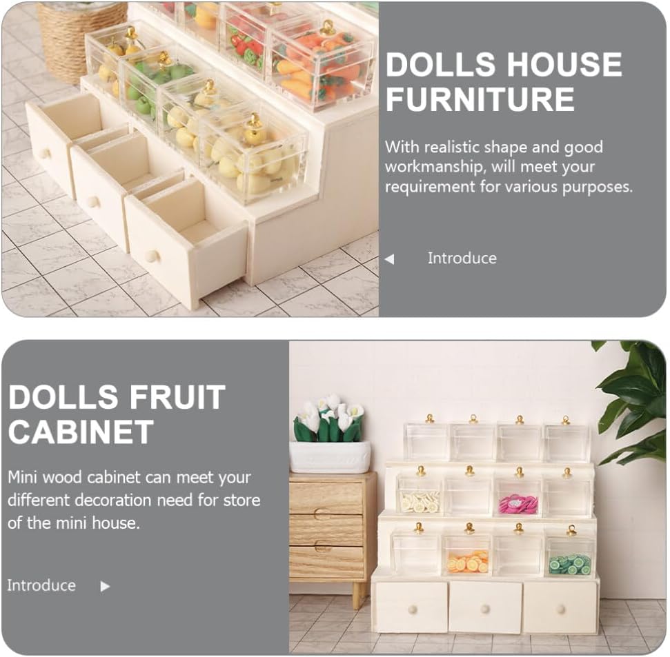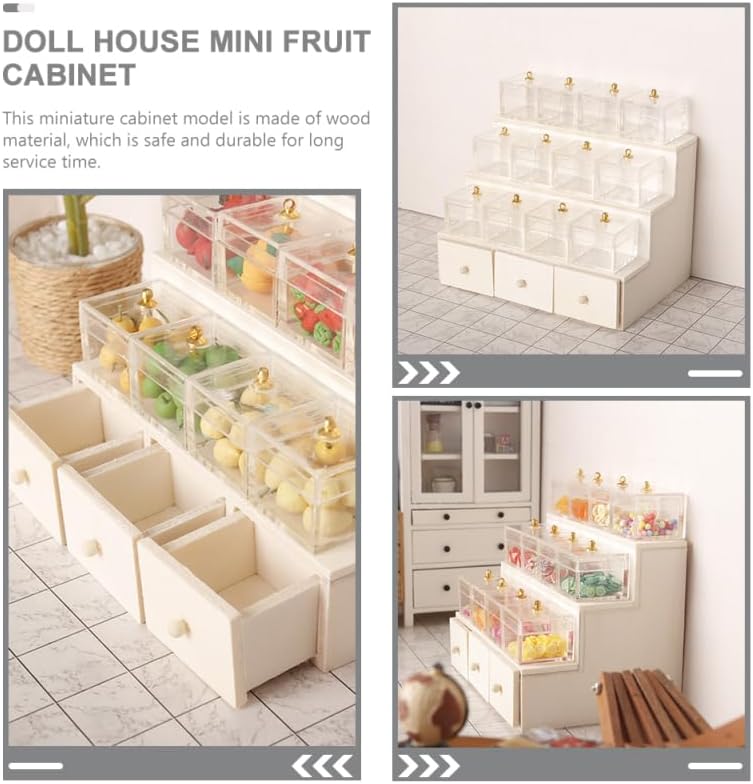 • Candy Fruit Display Dollhouse Furniture ---- الخزانة المصغرة مصنوعة من مادة خشبية ، طبيعية وعملية للاستخدام طويل الأمد.