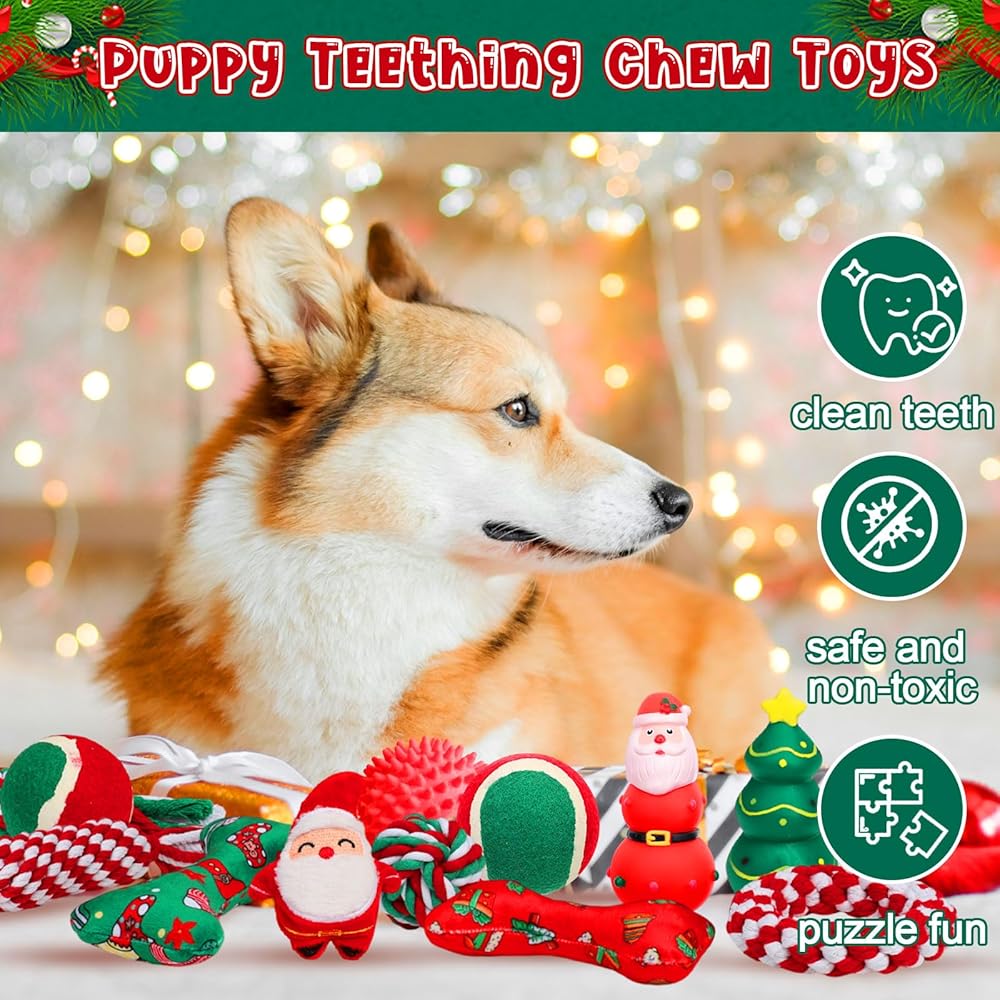 16 جهاز كمبيوتر شخصى عيد الميلاد الكلب ظهور التقويم 2025 سانتا كلوز ألعاب صرير عيد الميلاد قصب الحلوى الكرة التفاعلية والعظام لعبة مضغ للحيوانات الأليفة الصغيرة المتوسطة الكبيرة جرو التسنين هدية التدريب (عيد الميلاد)