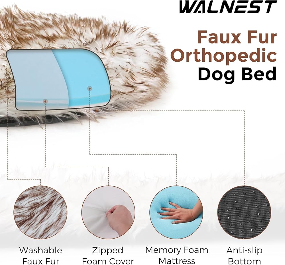 【سرير الكلب الفراء فو】 سرير الكلب الجوز العظمي يجمع بين غطاء الفراء فو الرقيق وقاعدة رغوة الذاكرة الناعمة. إن فراء Faux Faux الرفيع الفخم اللطيف على أنفه والكفوف ، ويوفر مكانًا مثاليًا للنوم أو الراحة أو اللعب لصديقك الفروي.