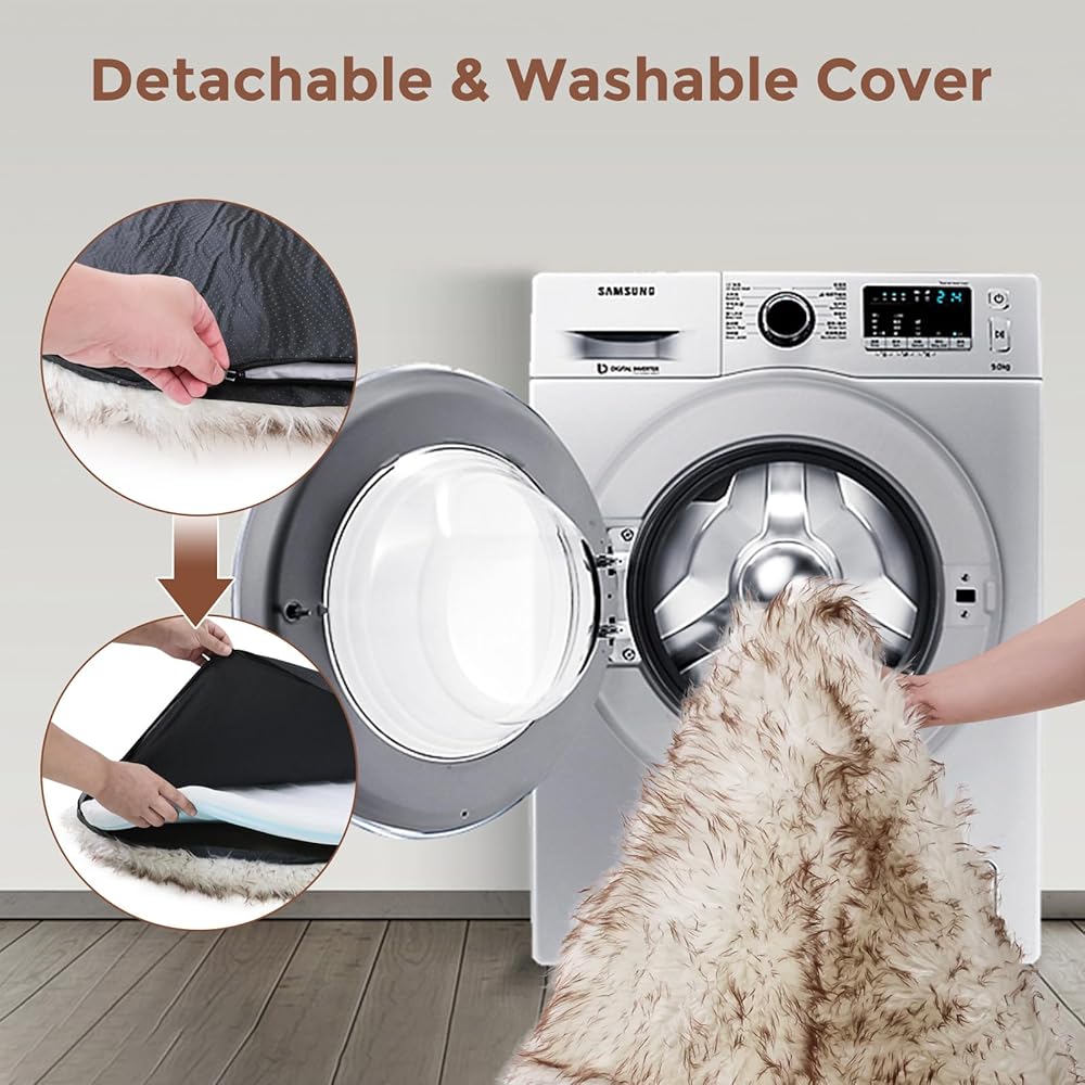 【قابلة للغسل الماكينة】 فرو فو قابل للفصل ويمكن فصله عن القاع ، وسهلة الغسيل وتجفيفها بسرعة. ما عليك سوى فتح السوستة ، وأخرج رغوة الذاكرة ، ووضع الغطاء في الغسالة للتنظيف. آلة قابلة للغسل على دورة لطيفة وعلق حتى يجف. تعثر جاف على نار خفيفة إذا لزم الأمر.