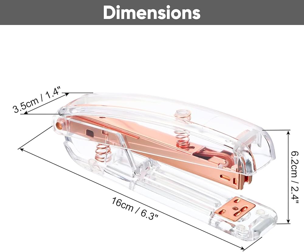 • Great Present: As a portable and light gift for your friend, college student, someone at the office or that special person in your life, a desk with the acrylic and gold/ rose gold stapler. A great office desk gift idea!