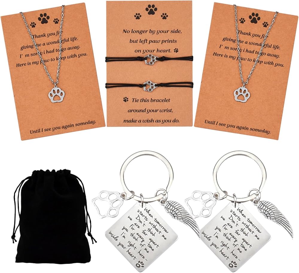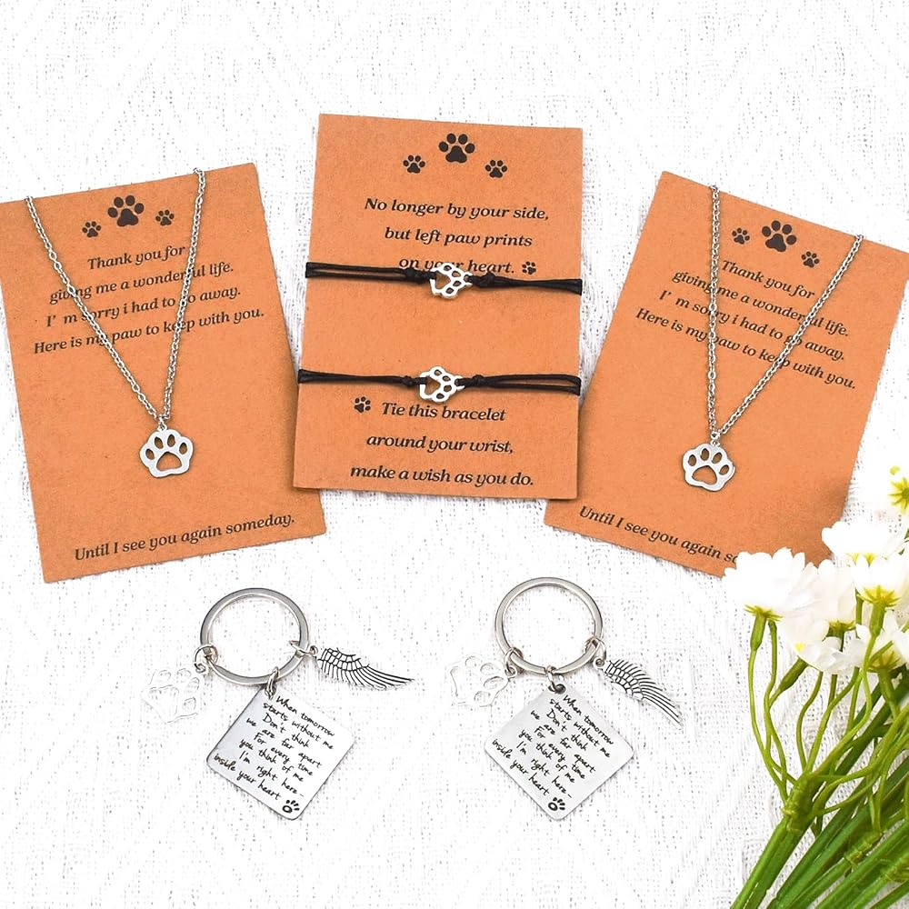 6 Pcs Pet Memorial Gifts, Dog Memorial Gifts for Loss of Dog Cat Bracelet Necklace Sympathy Gift Remembrance Gifts