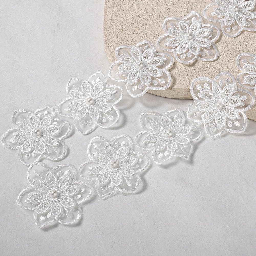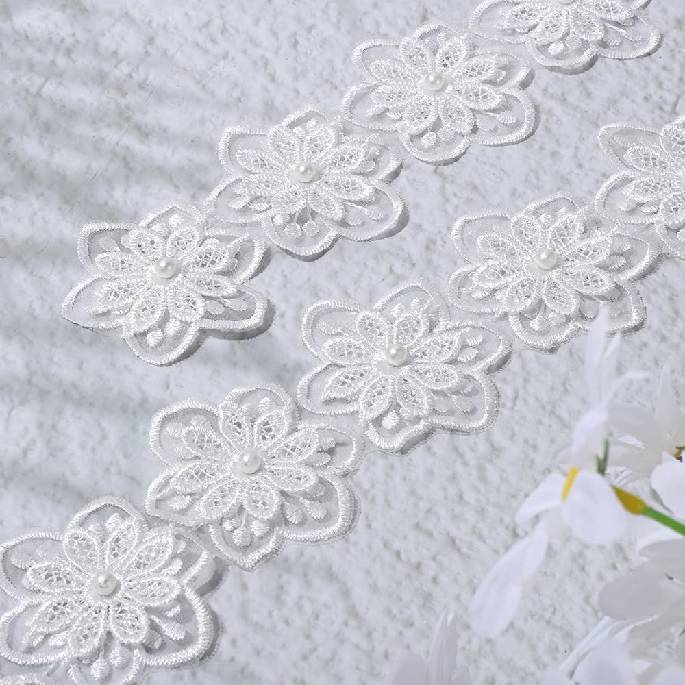 【Elegant Design】 White lace trim with pearl beading adds a 3D effect, creating a sophisticated look for wedding dresses, clothing, and necklines. The intricate embroidery and floral patterns provide a timeless, elegant addition to any project.